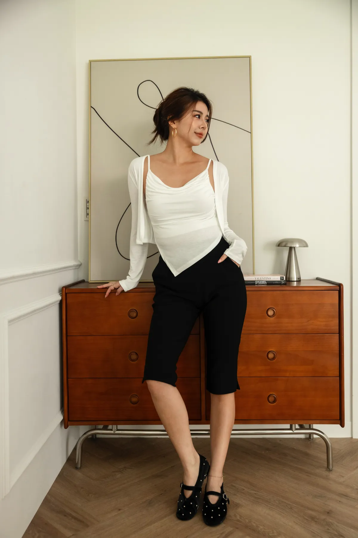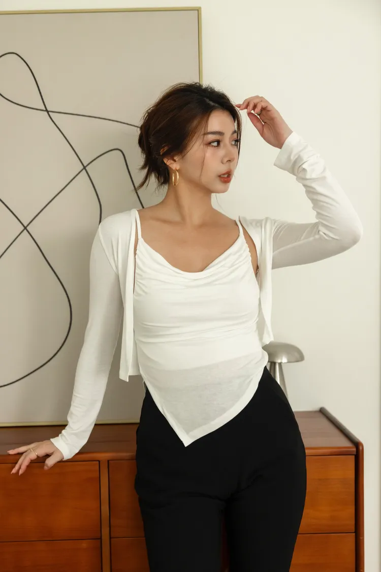 抓皺側邊不規則下擺背心+薄罩衫Set(白)