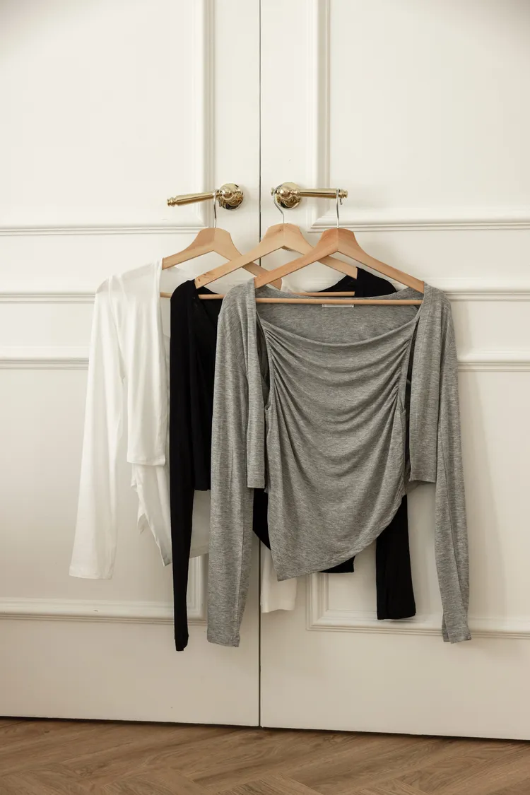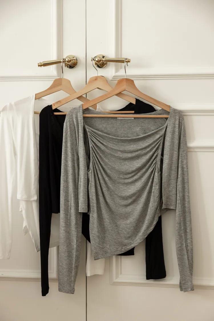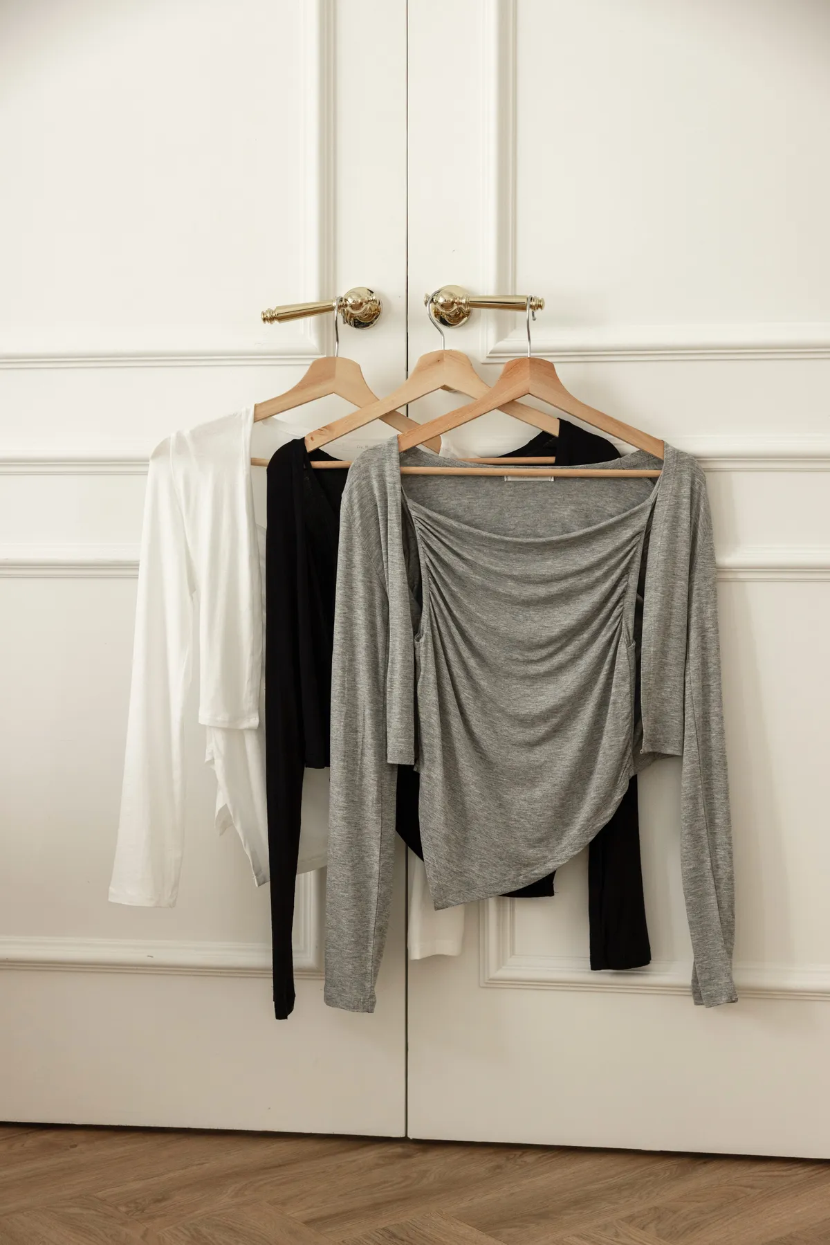 抓皺側邊不規則下擺背心+薄罩衫Set(淺灰)