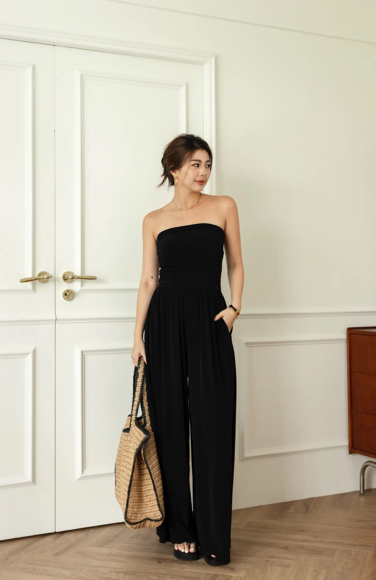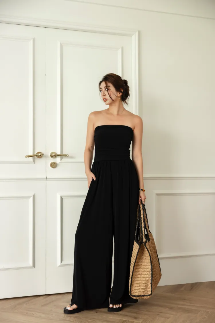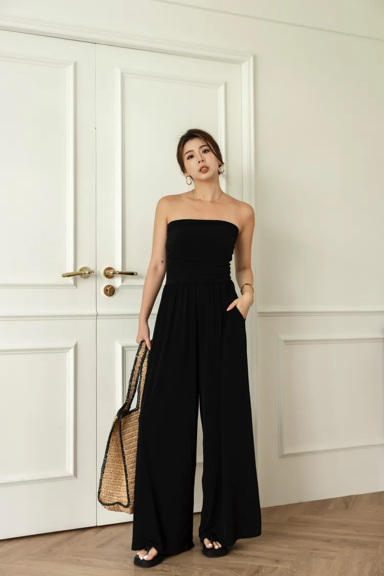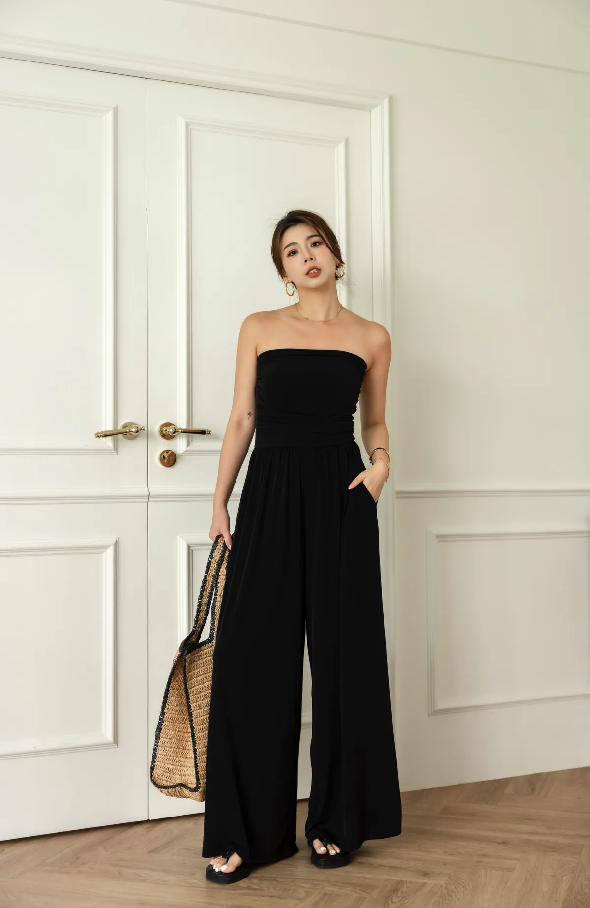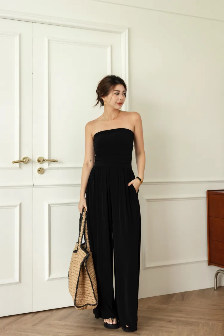 冰絲涼感修身平口Bra超彈性連身褲(黑)