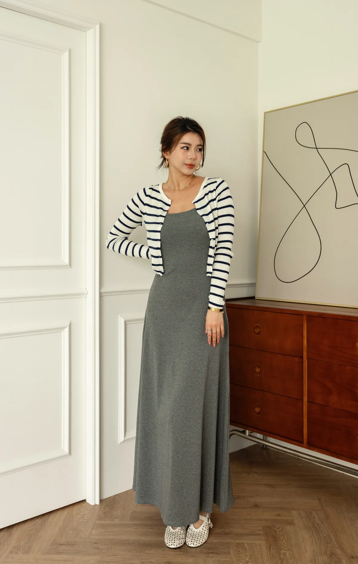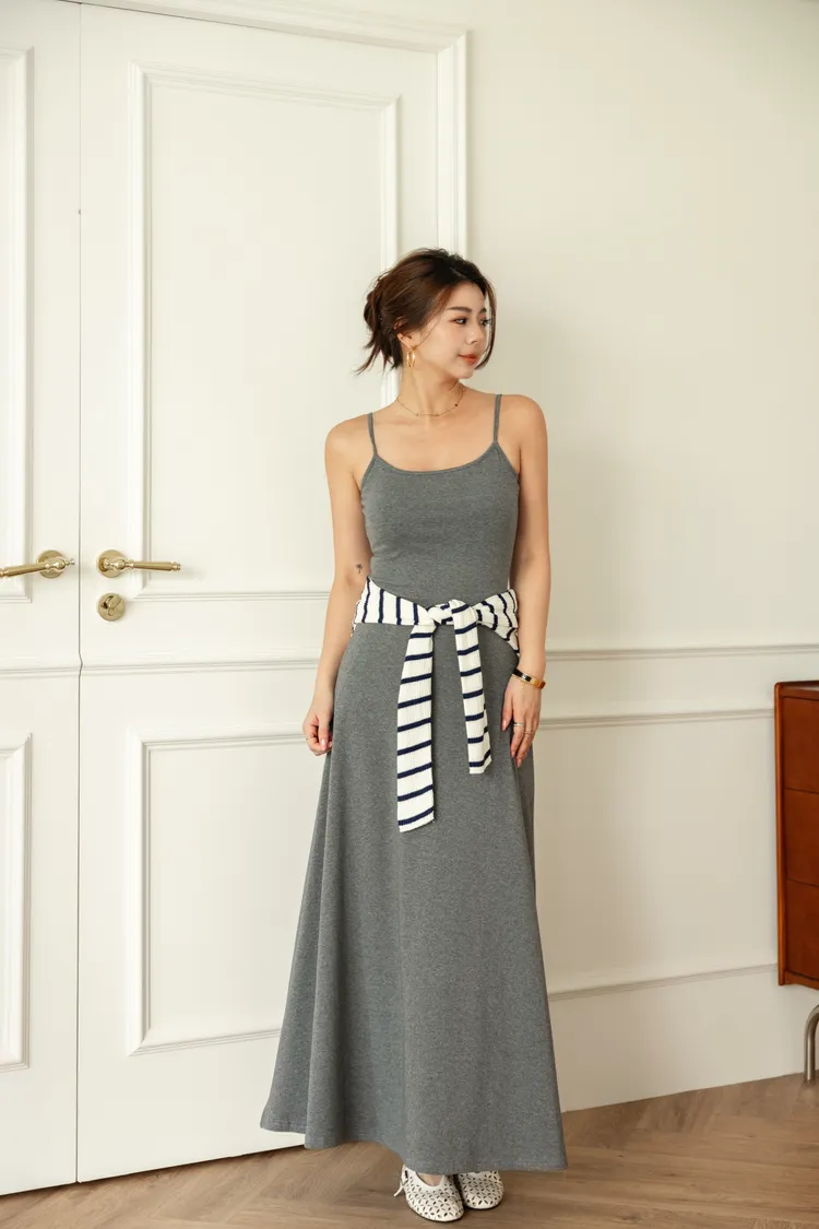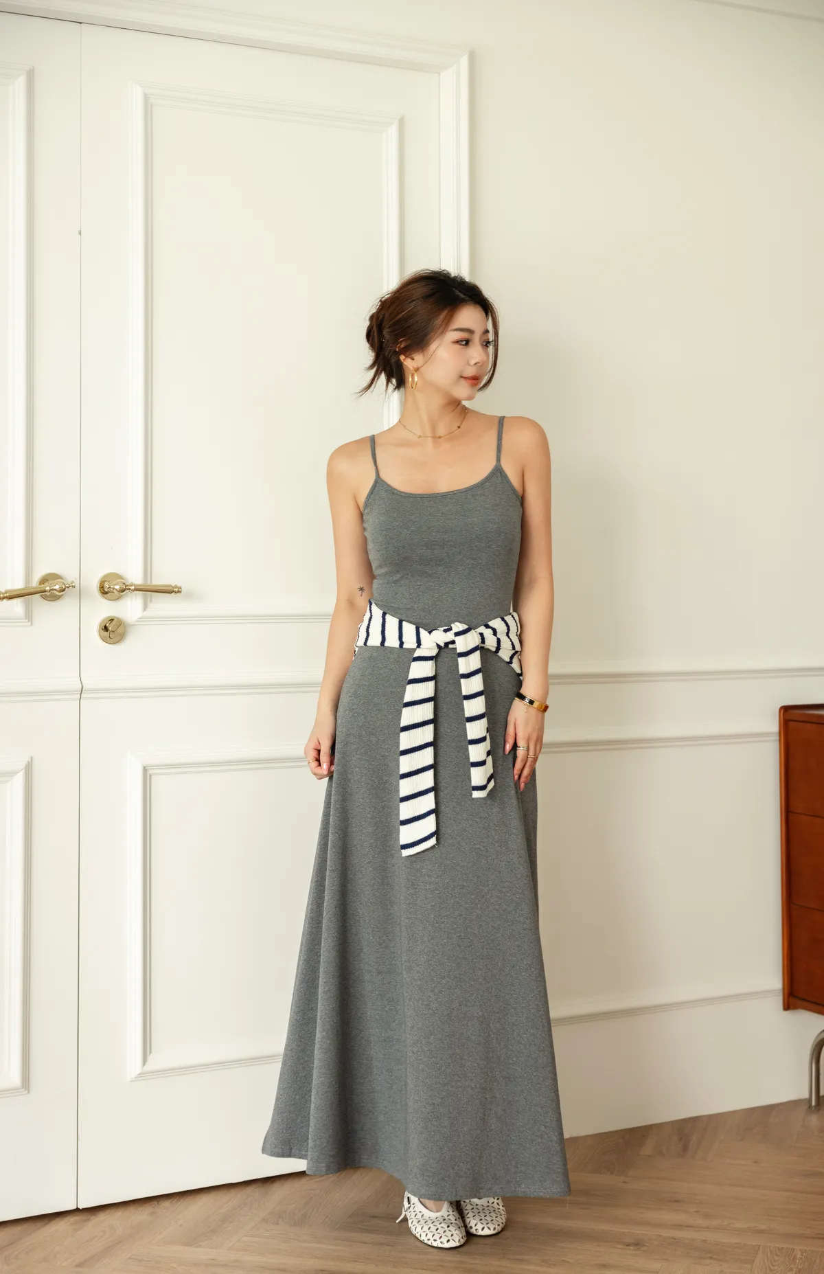 圓弧傘狀彈性棉質Bra長洋裝(灰)