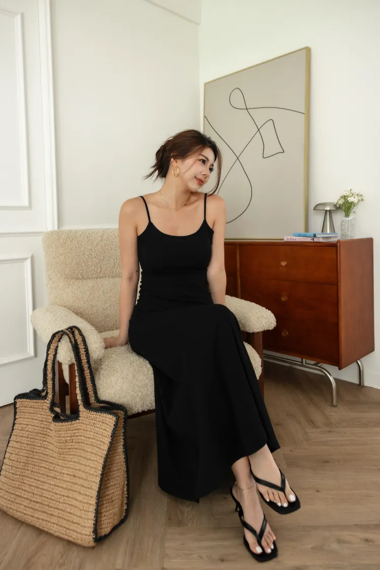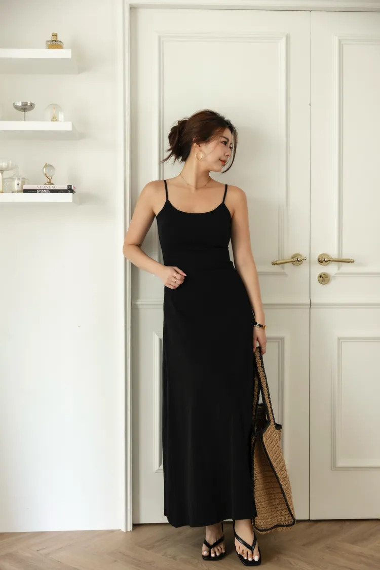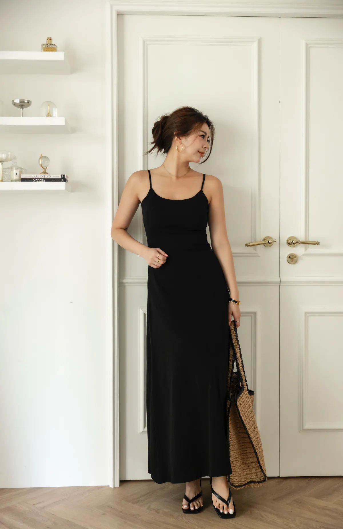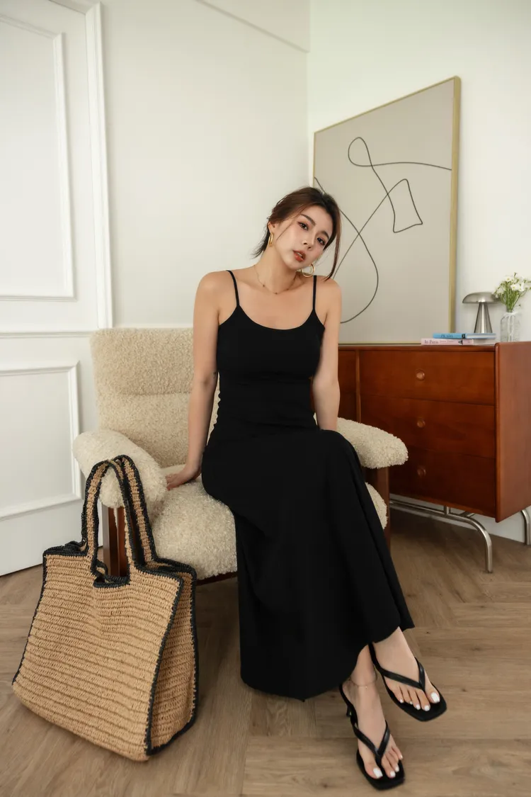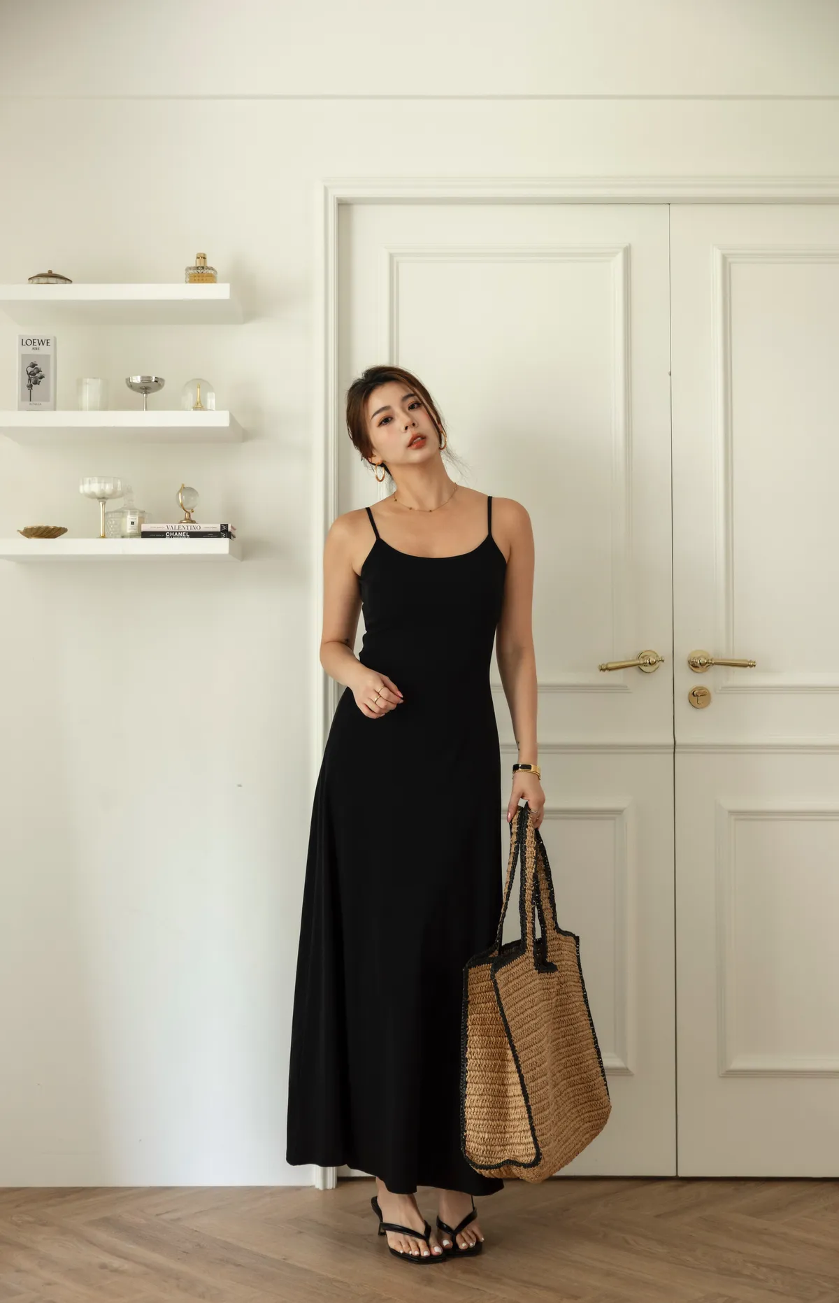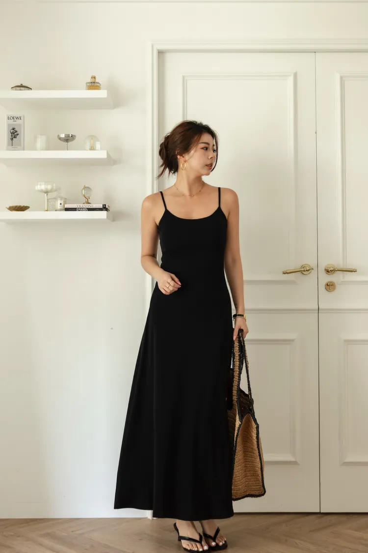 圓弧傘狀彈性棉質Bra長洋裝(黑)