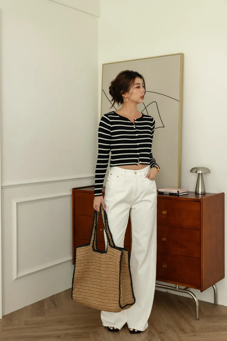長腿濾鏡!立體剪裁順身落地喇叭白色牛仔褲