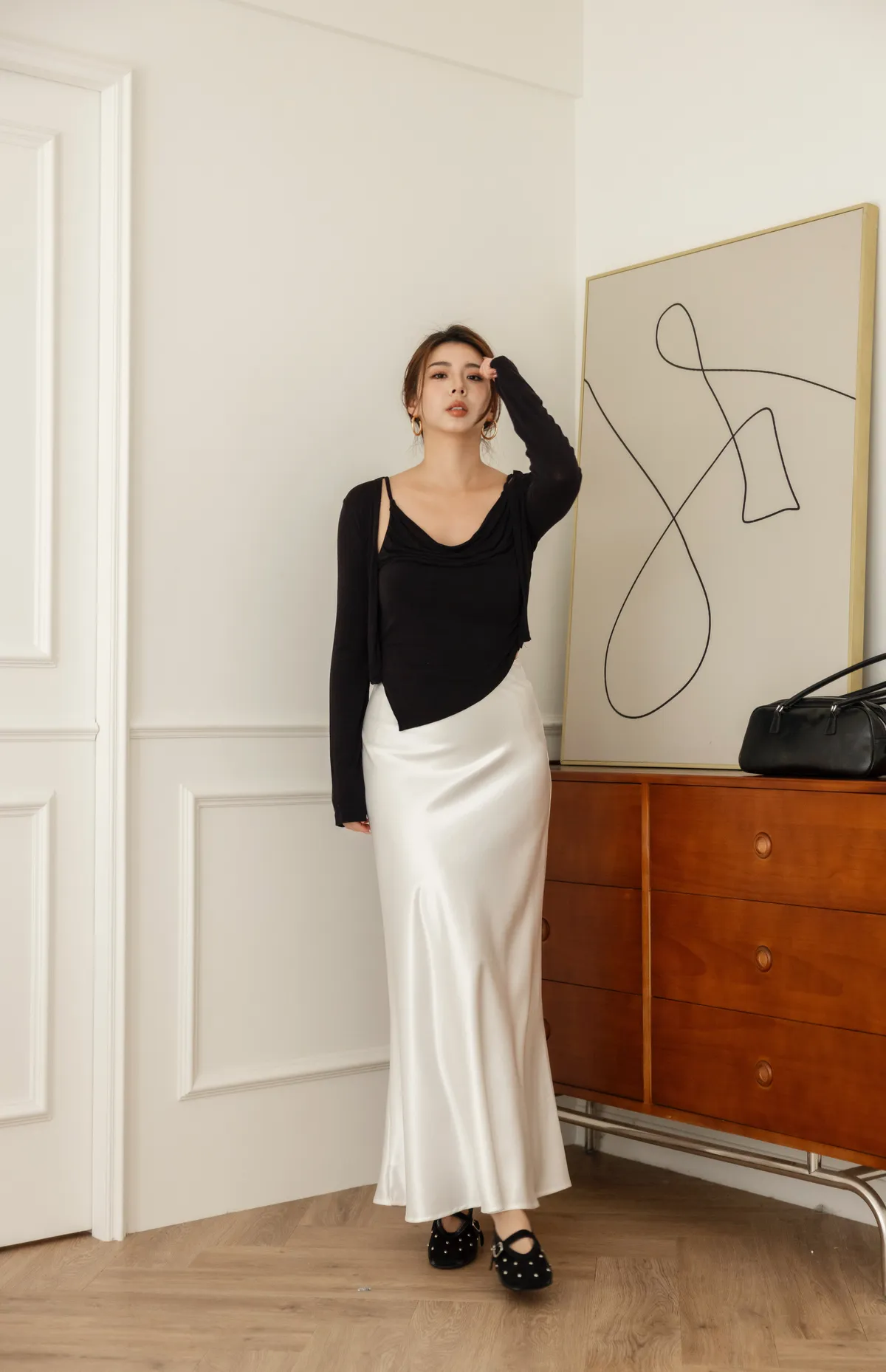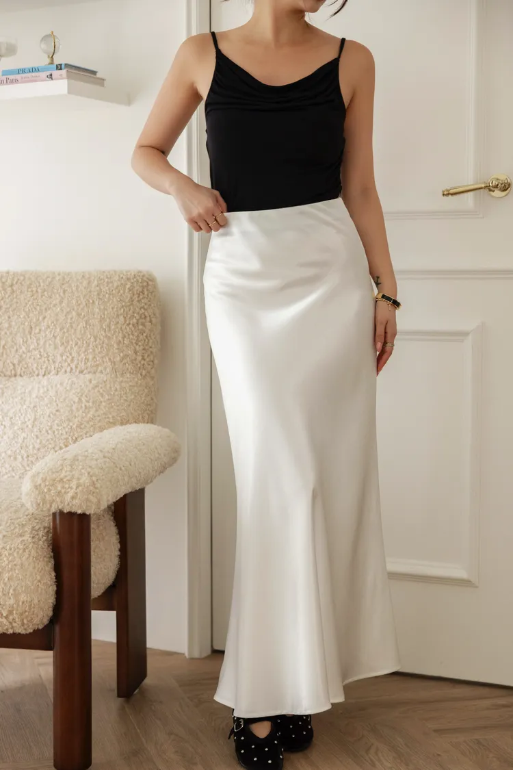 高級緞面重磅數光澤感半裙(象牙白)
