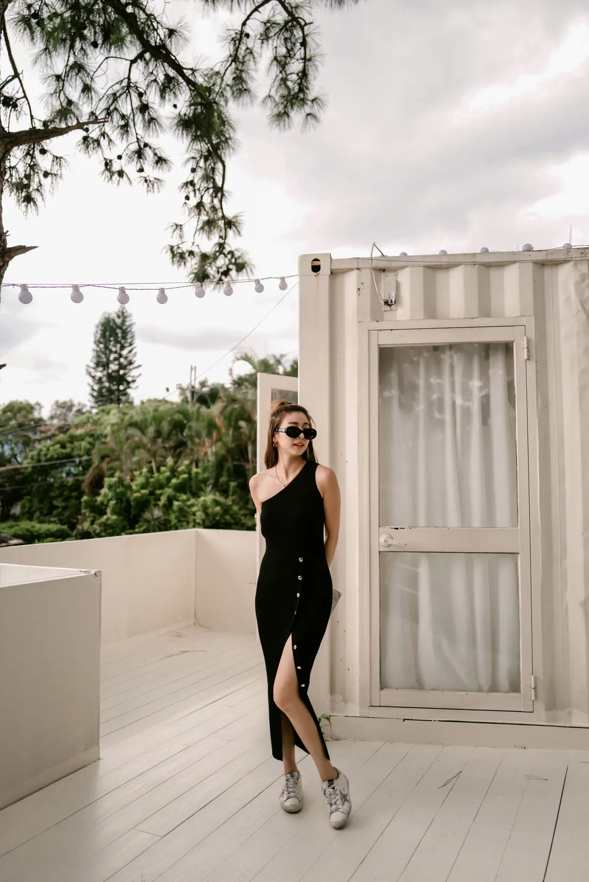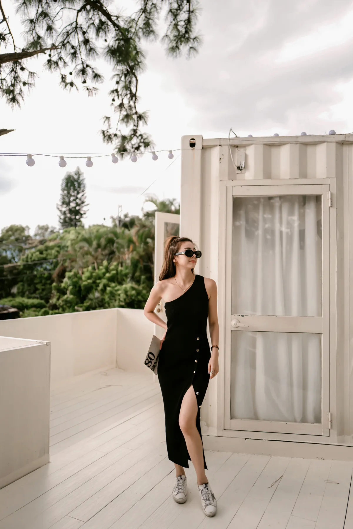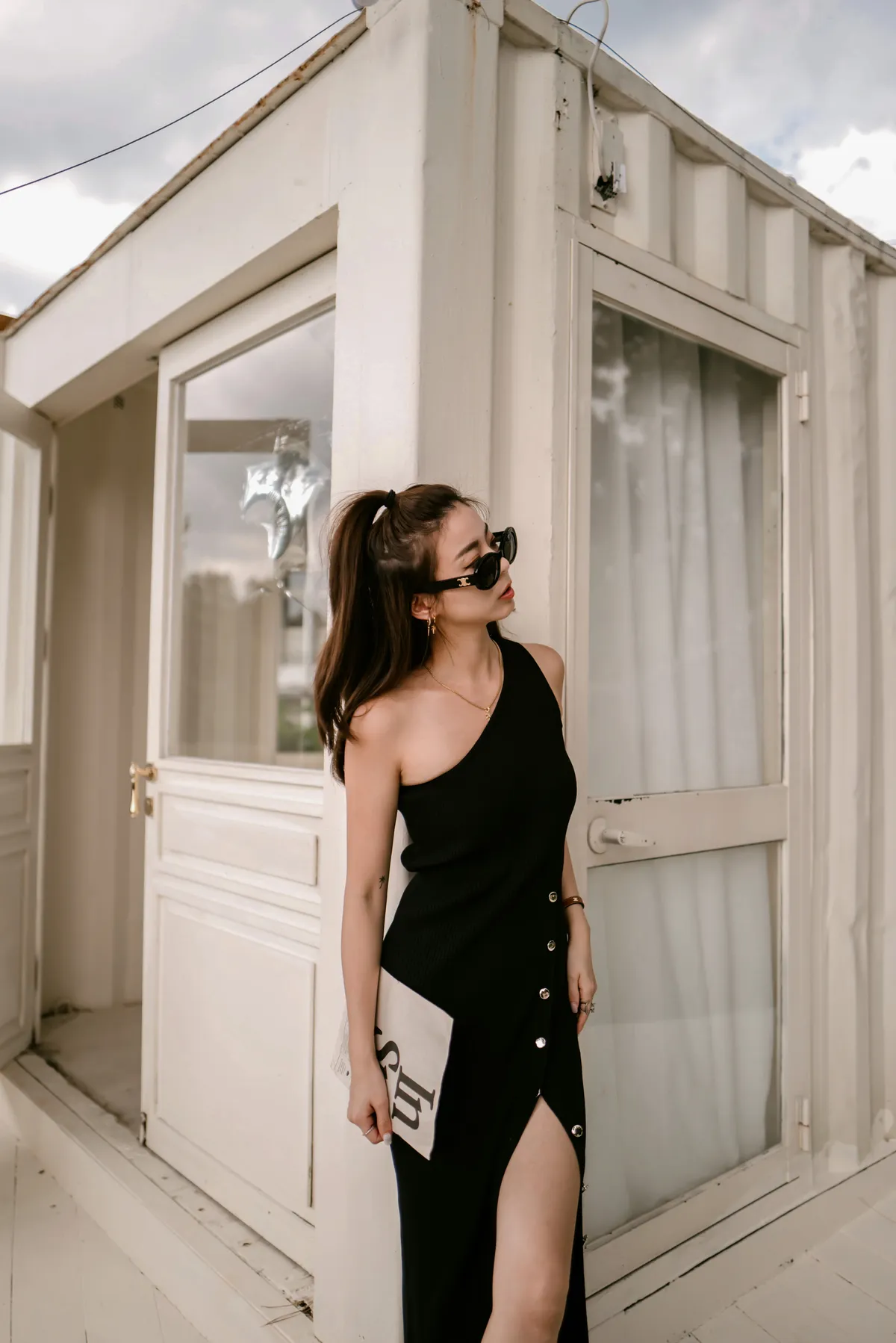 時髦斜肩設計 腋下高度剛好