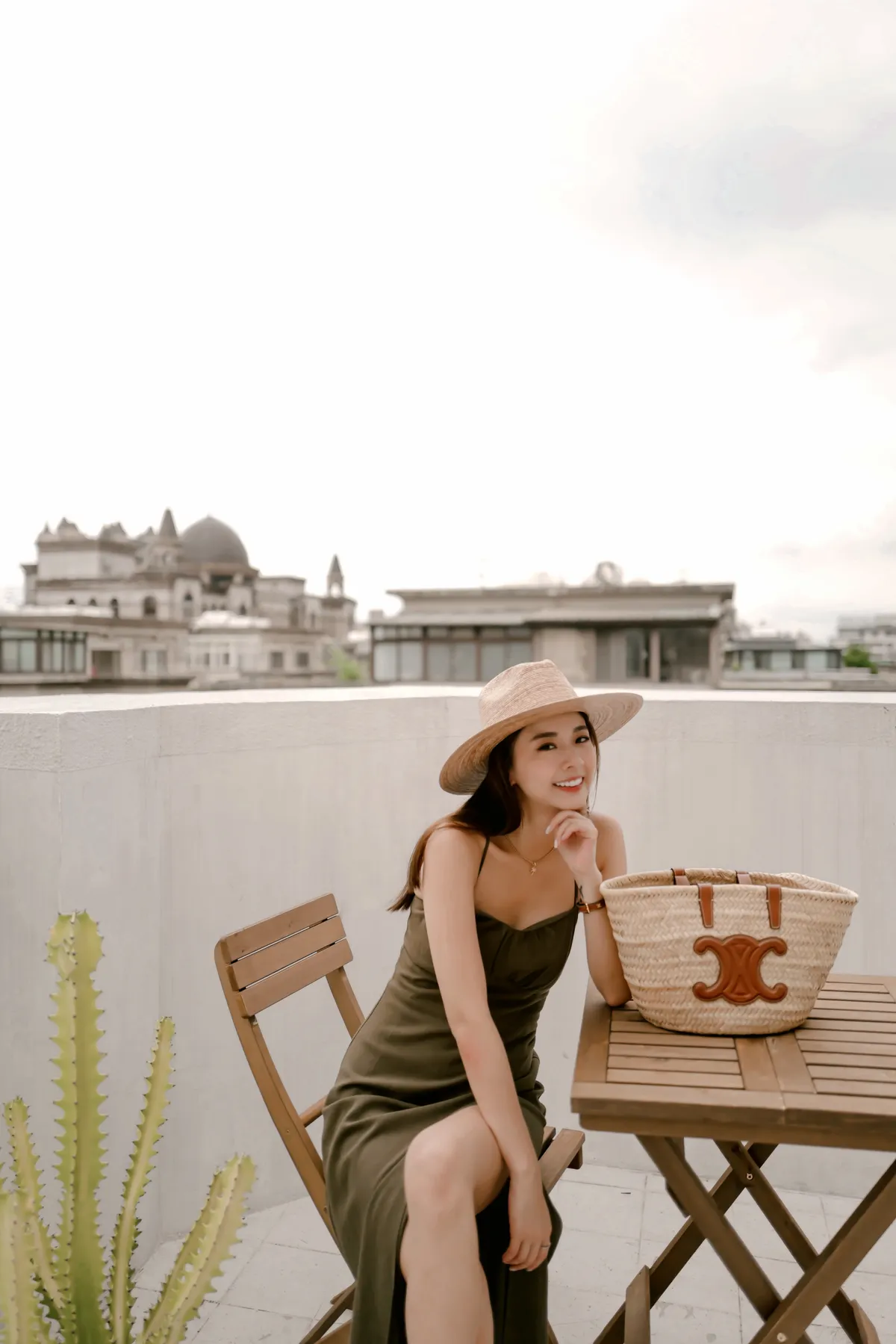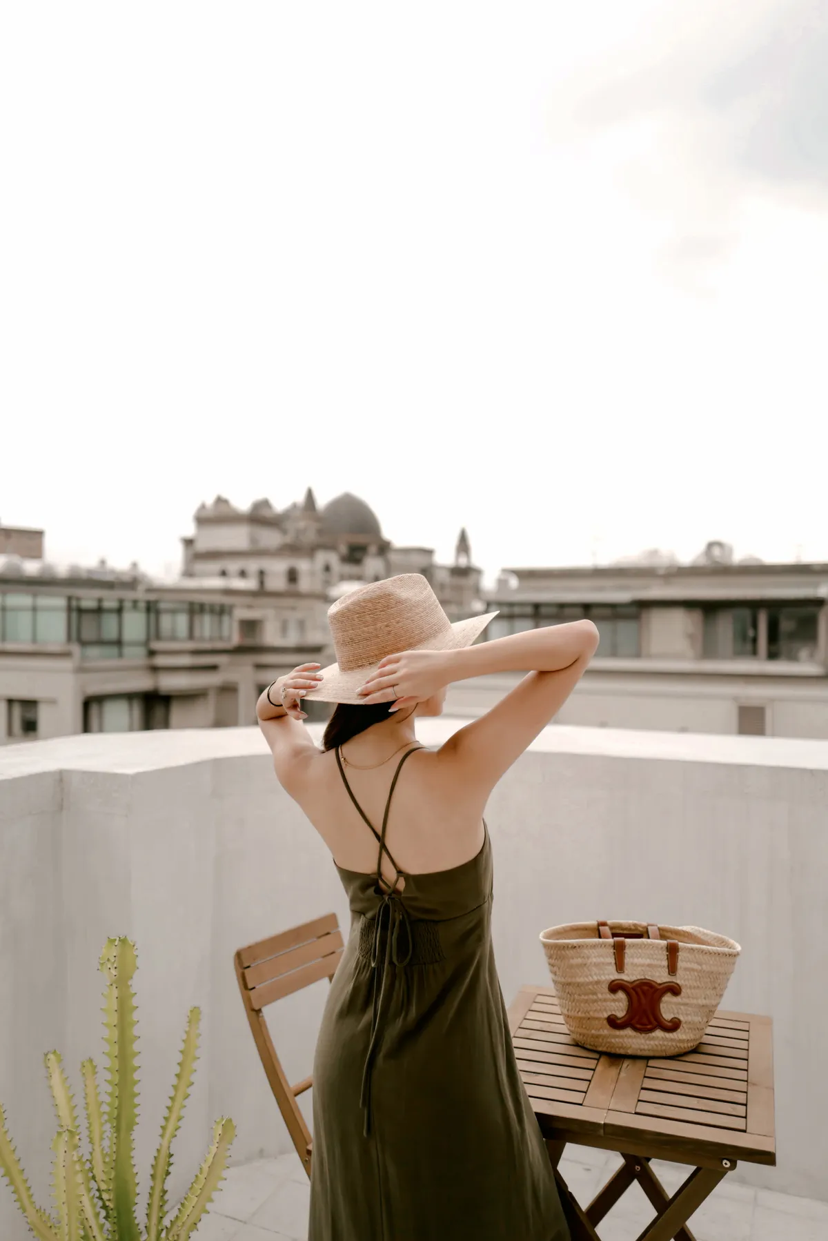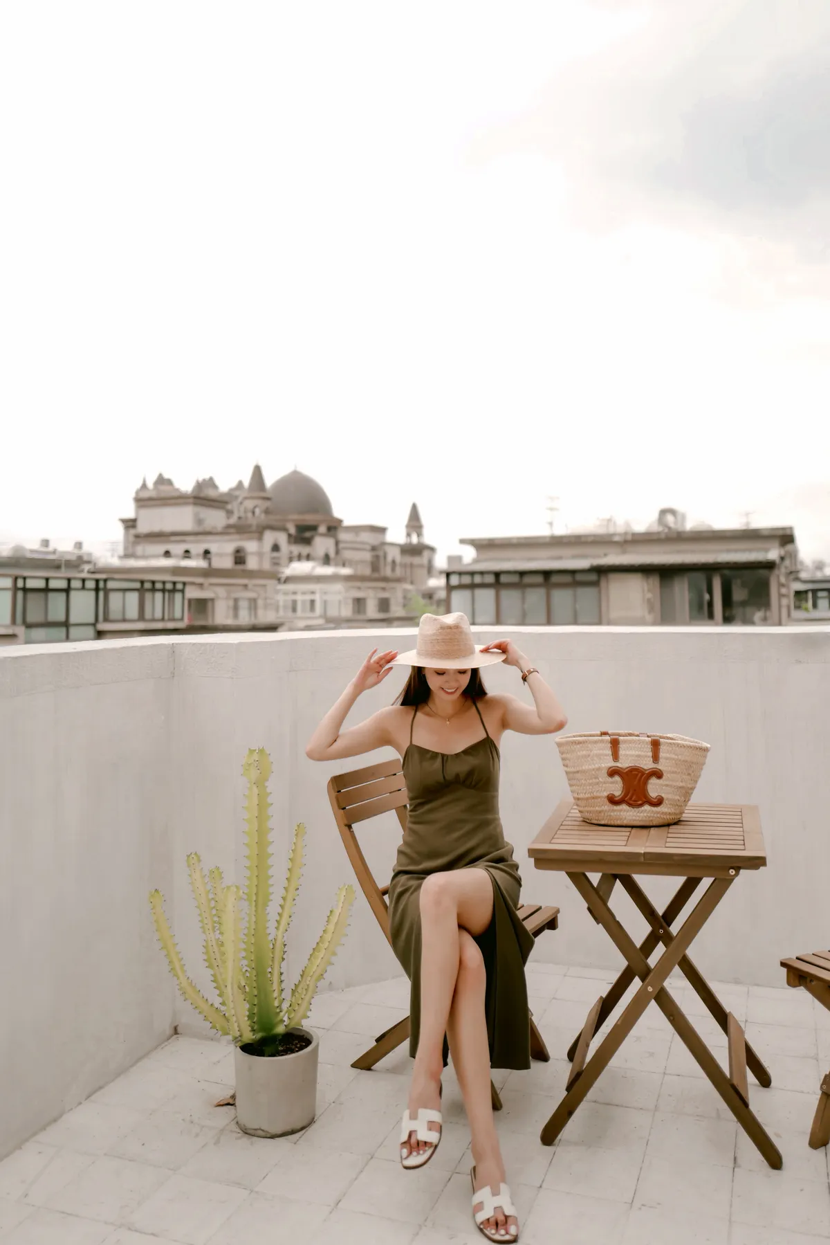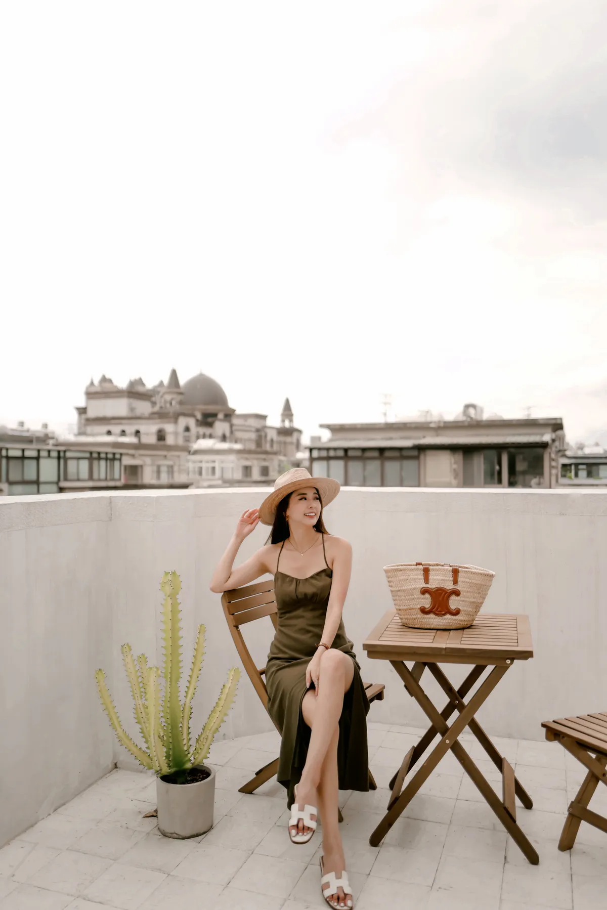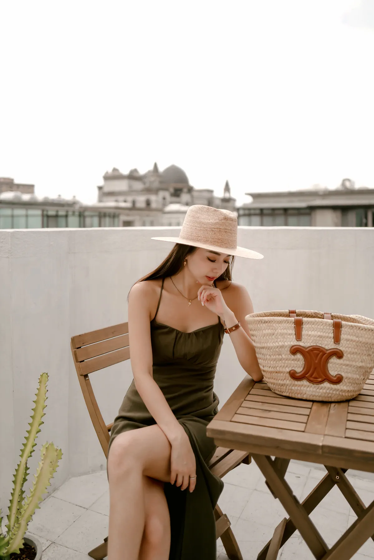 訂製系列「美背開杈棉麻洋裝」(墨綠)(現貨)