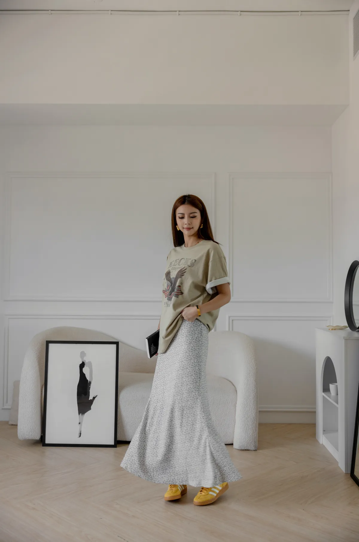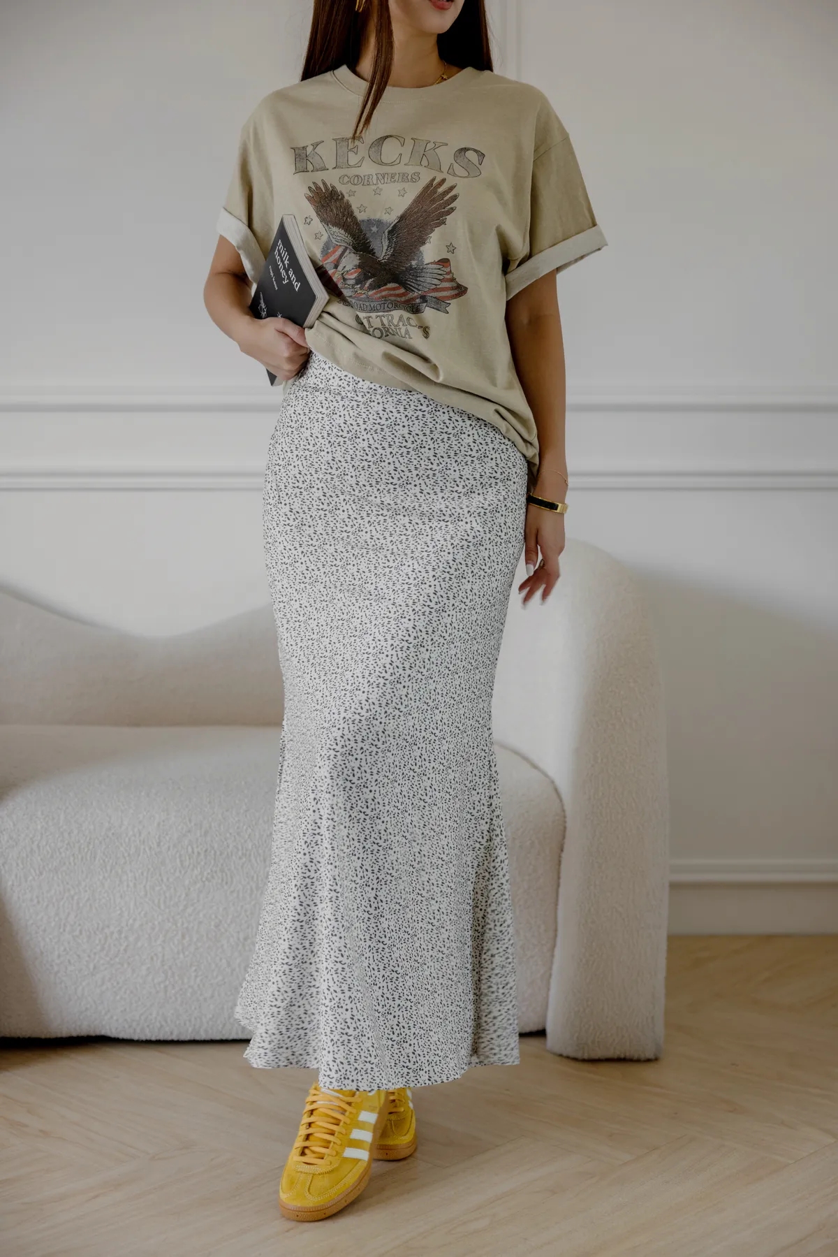 碎點小豹紋緞面修身魚尾長裙