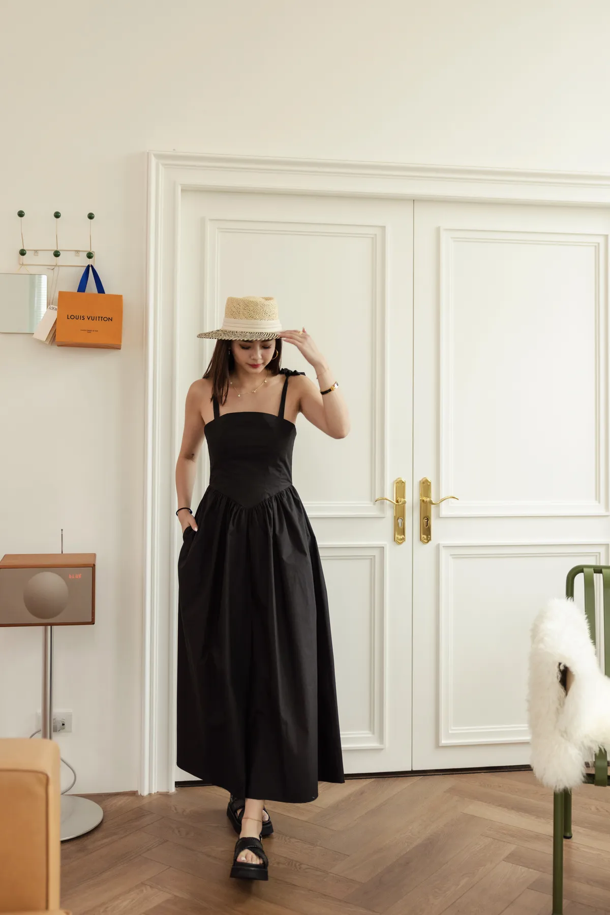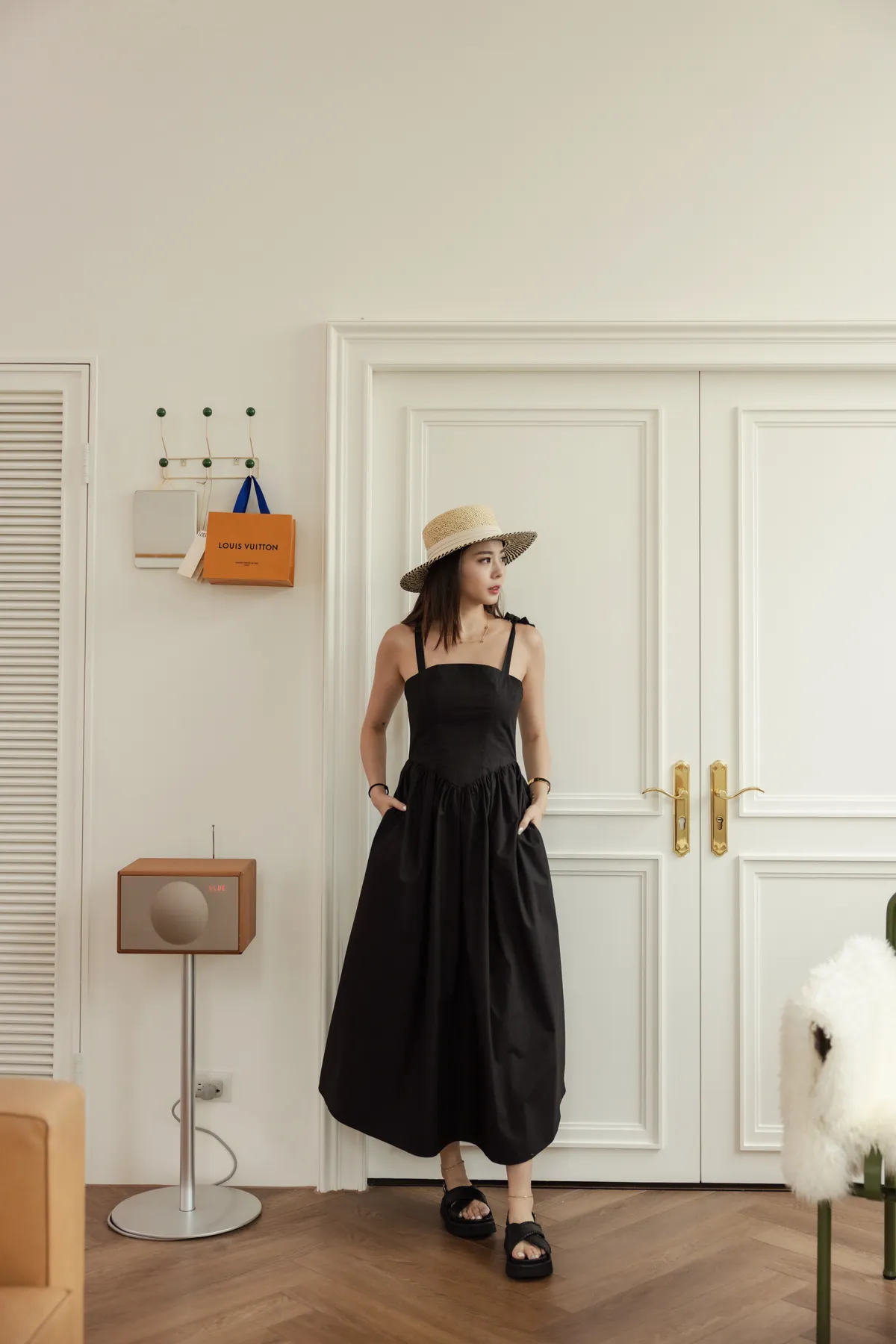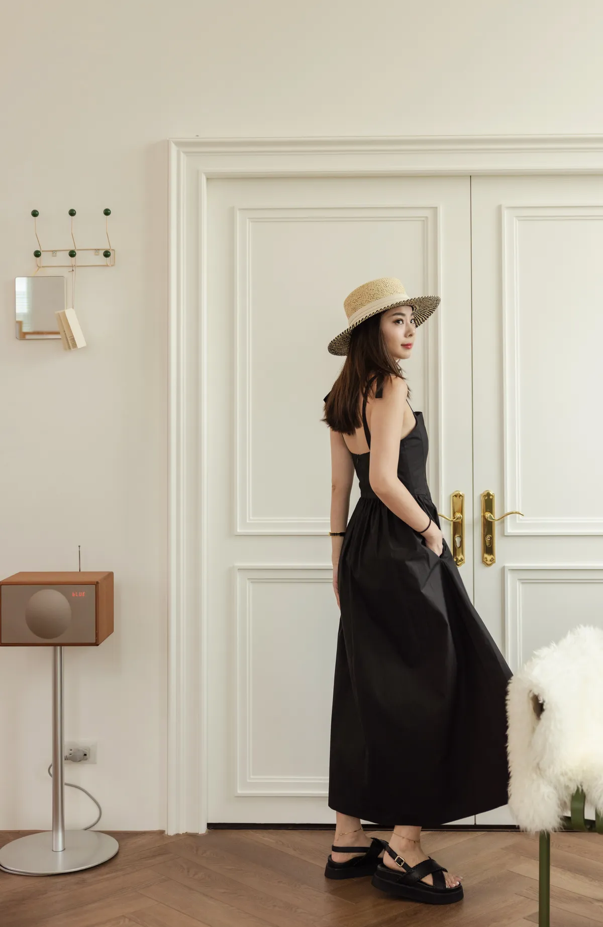 好感度加分高級質料挺版圓弧長洋裝(黑)