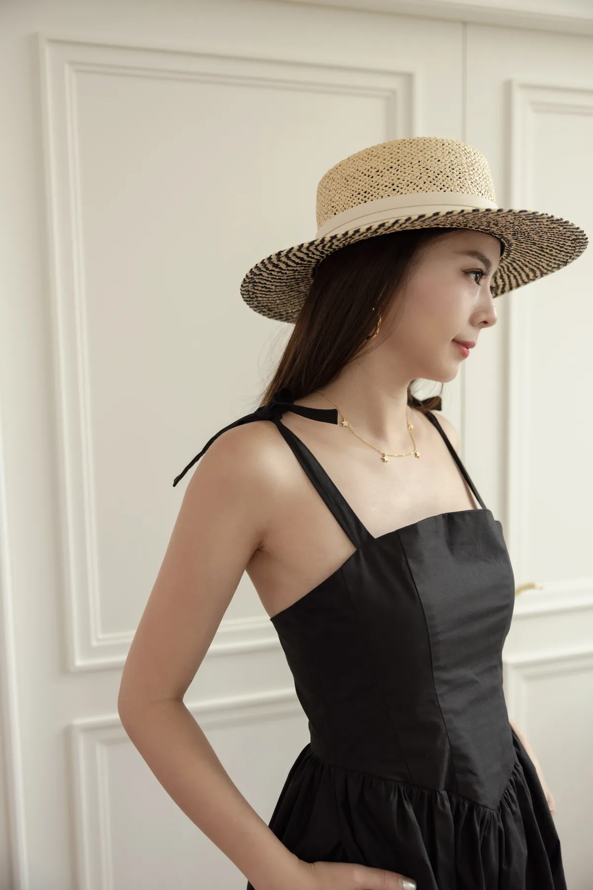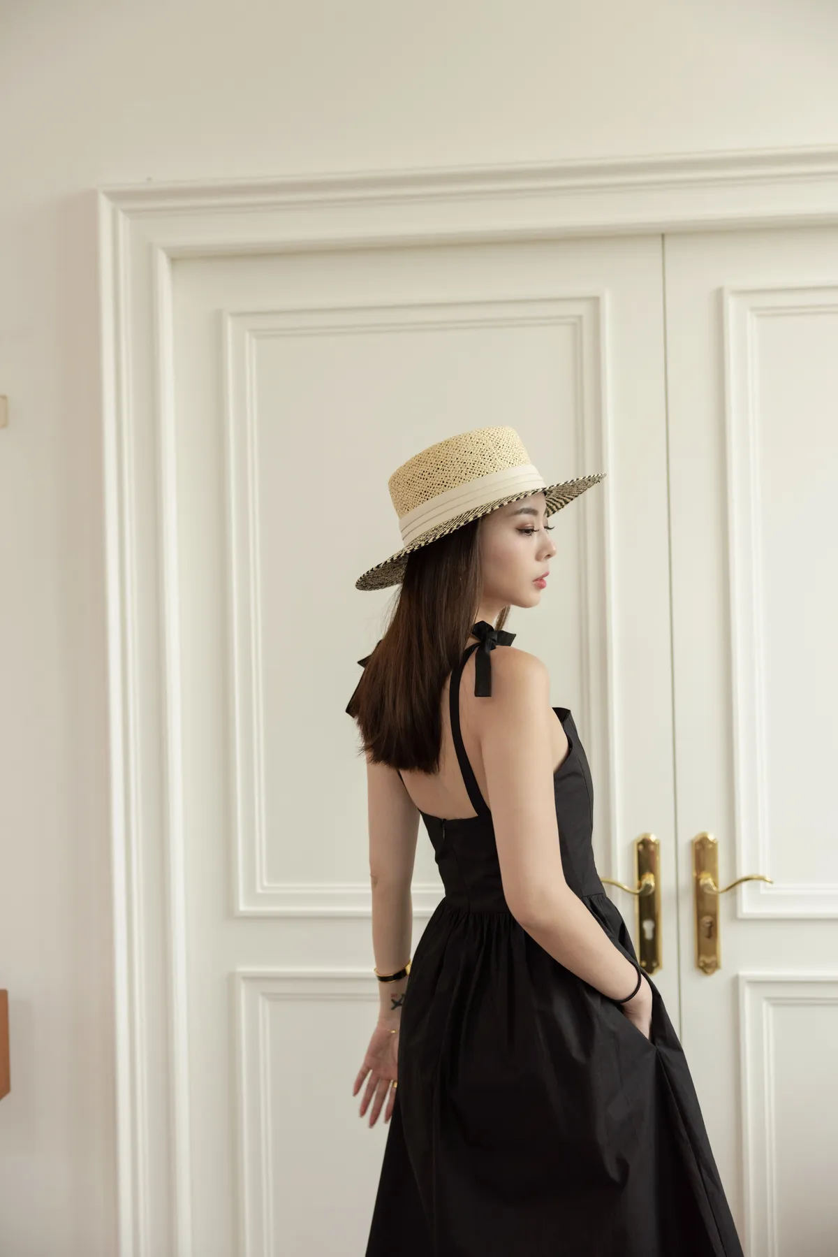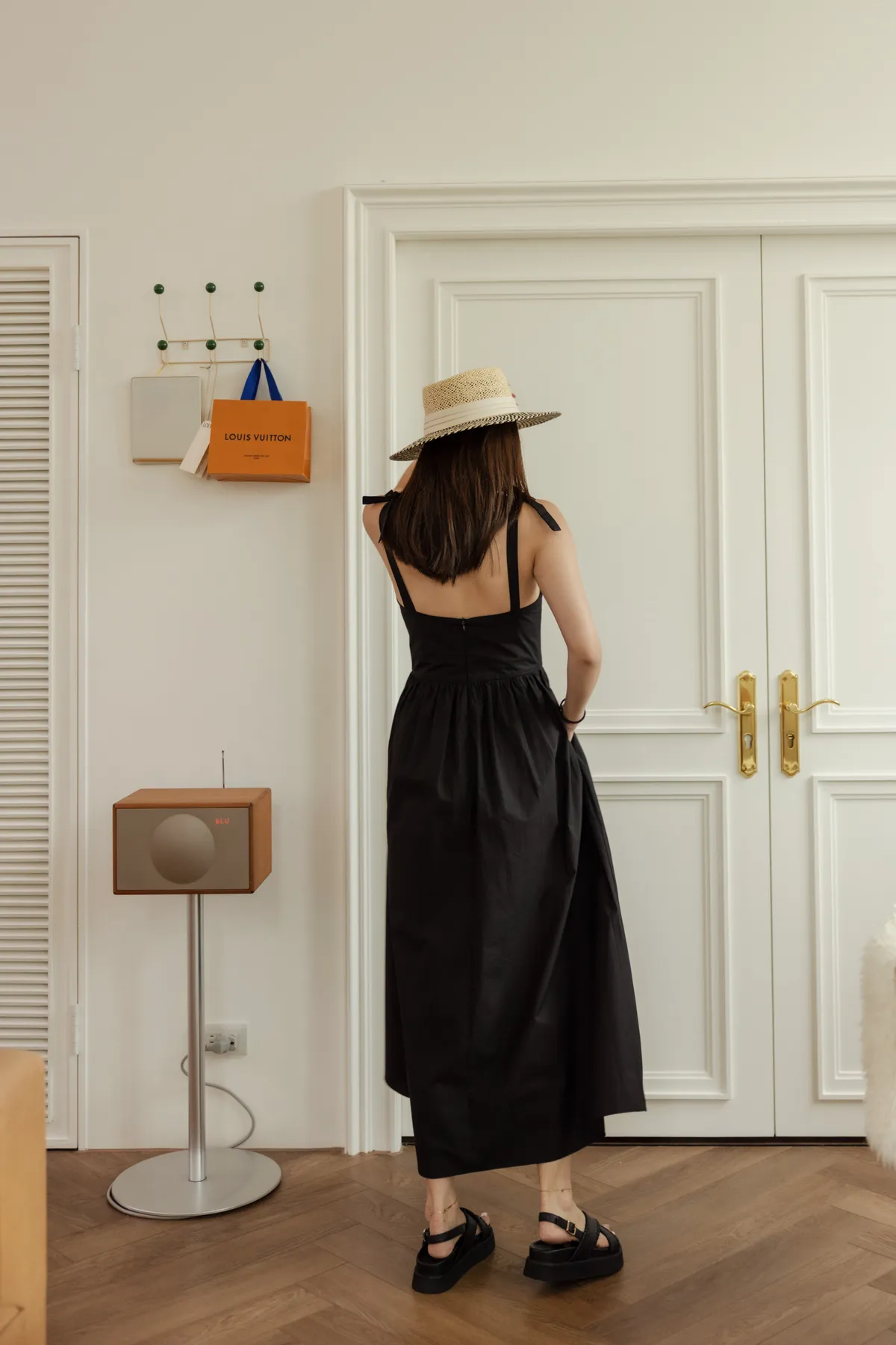 好感度加分高級質料挺版圓弧長洋裝(黑)