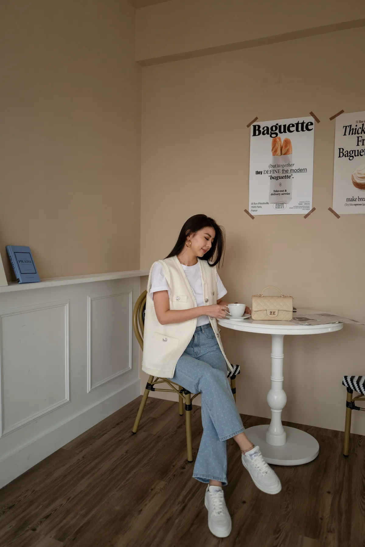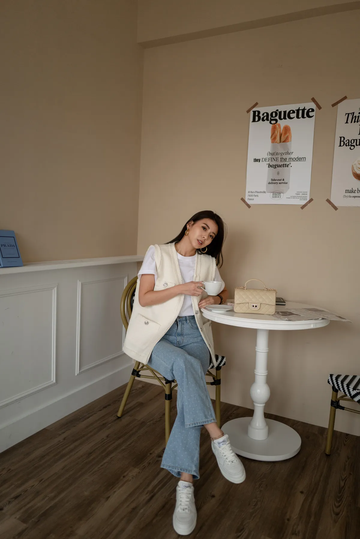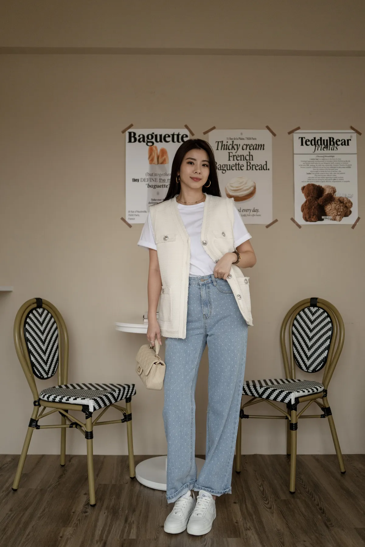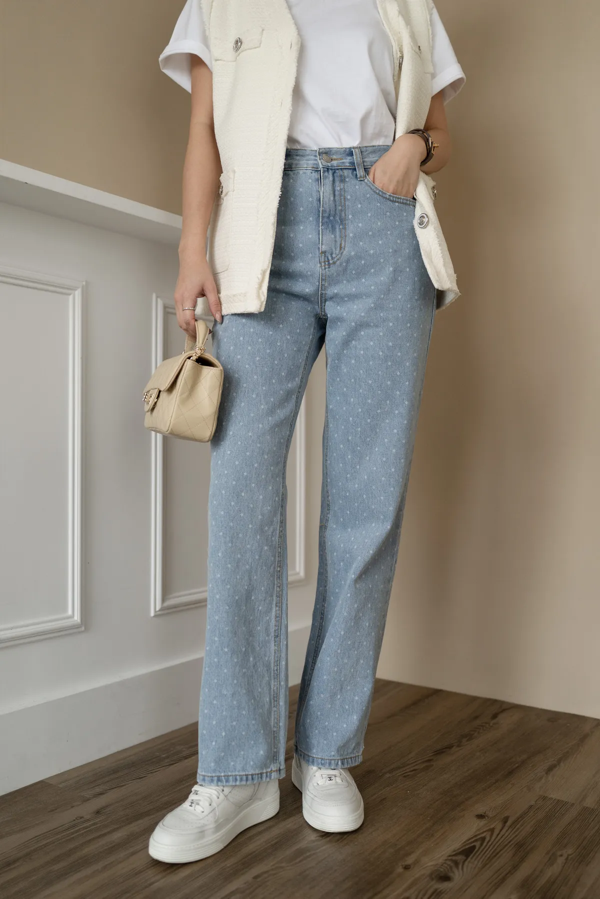 春夏必擁有小白點點直筒淺刷色牛仔褲