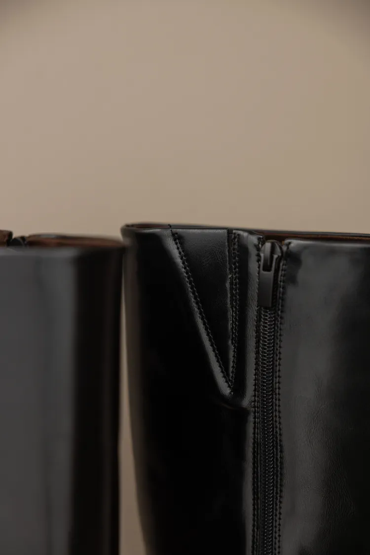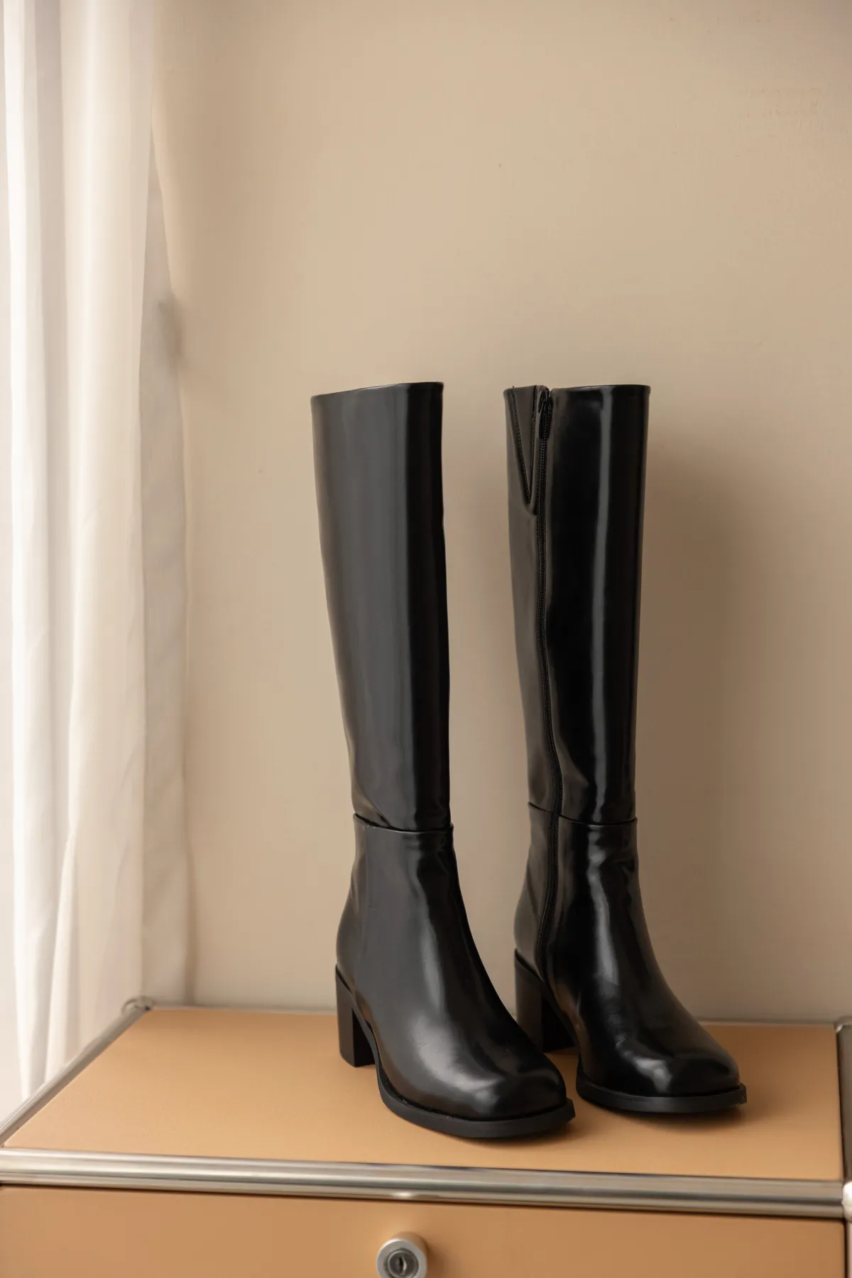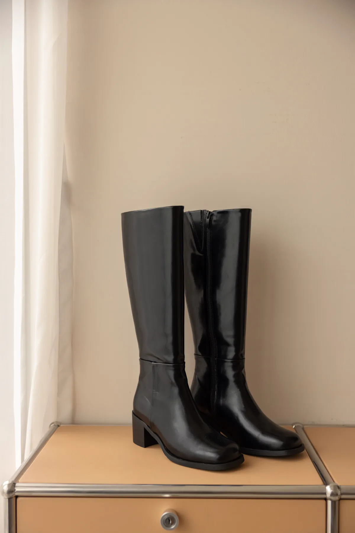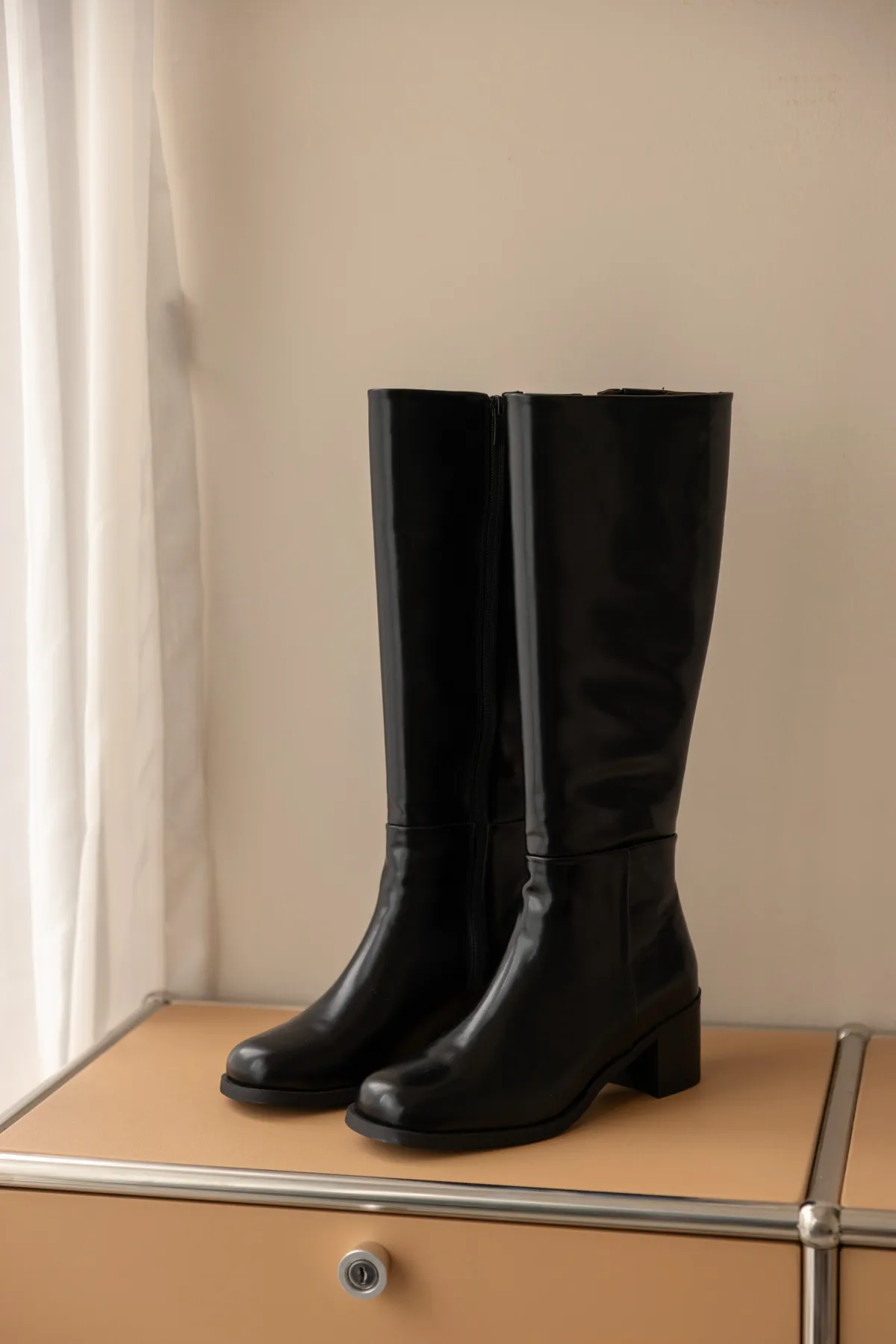 大牌質感方圓頭高粗跟長筒靴(必買款!)