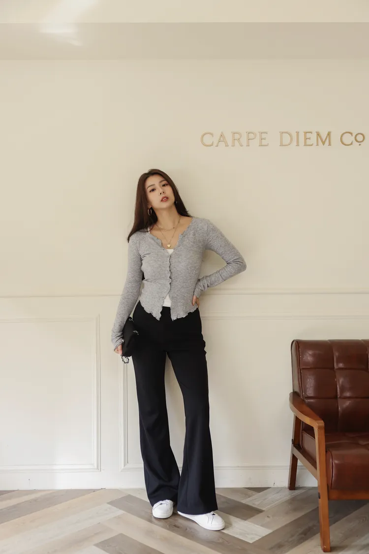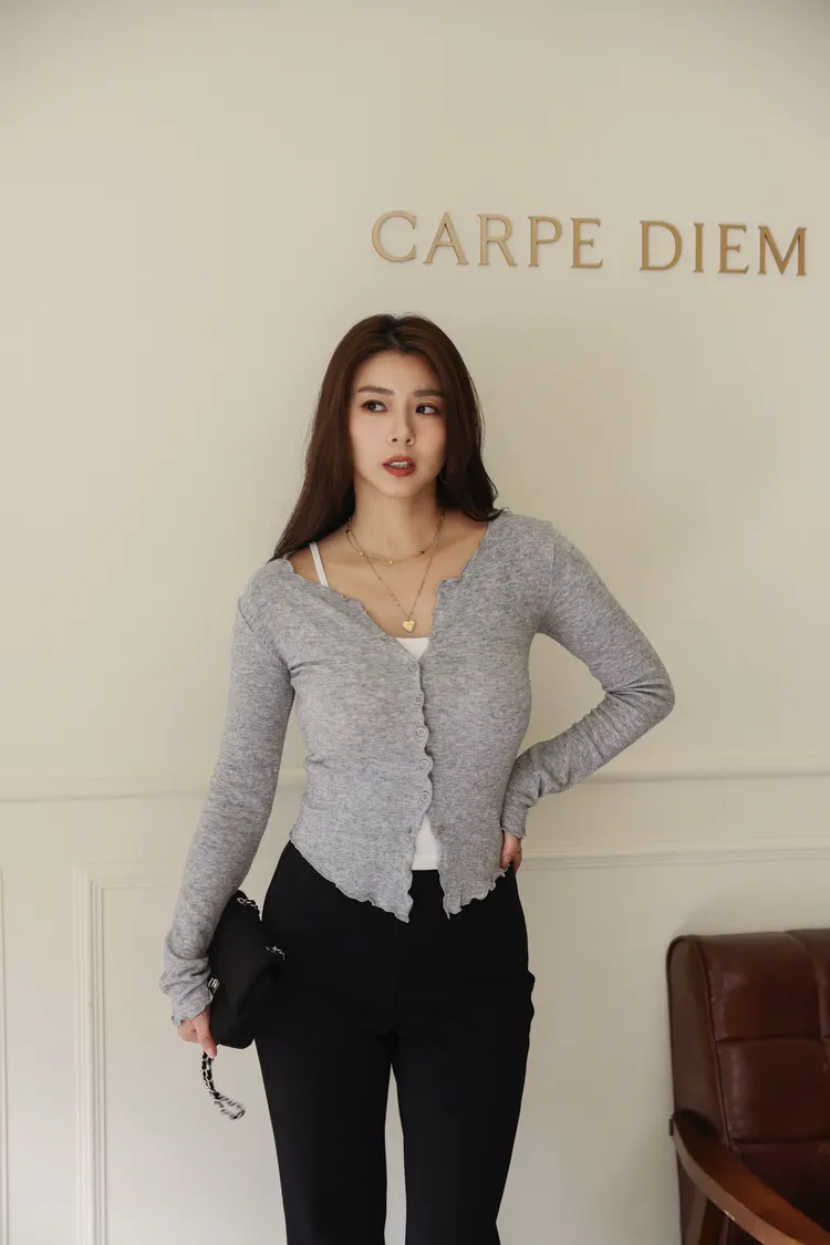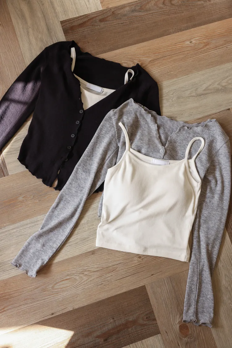 木耳邊極親膚棉質外罩衫+BraTop兩件Set(灰)