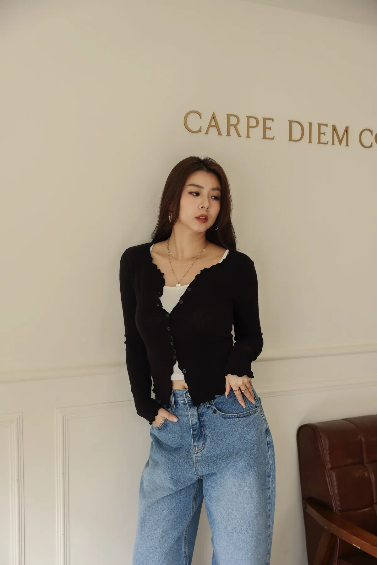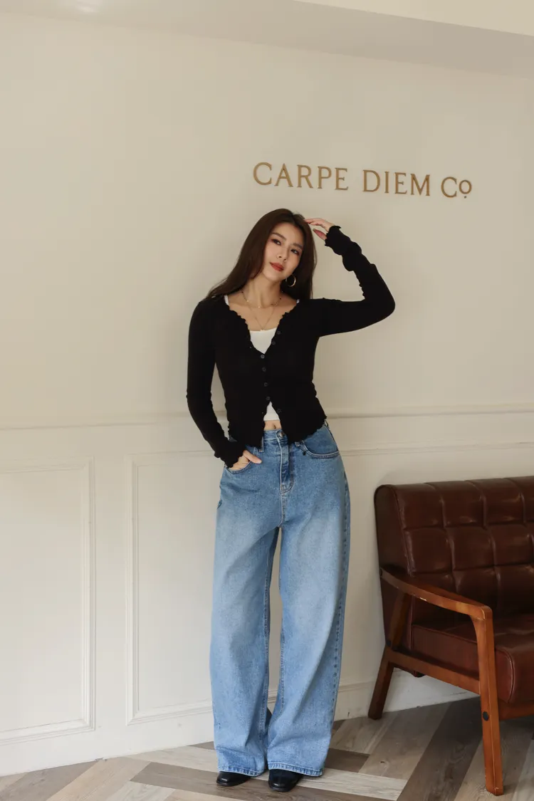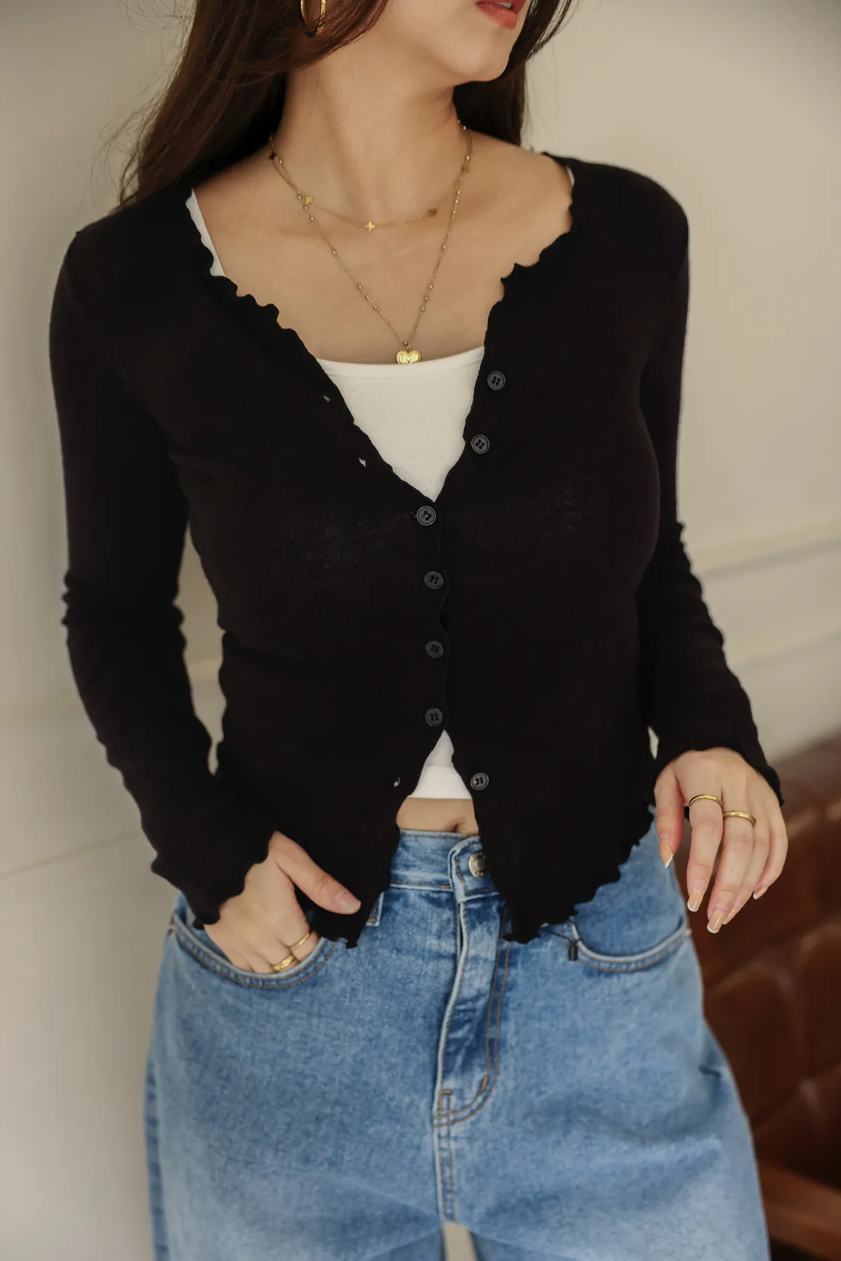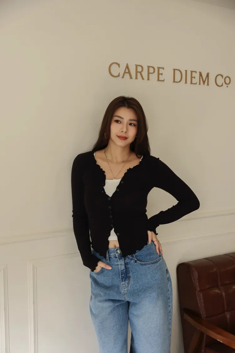 超可愛的捲捲木耳邊 增添一些造型感 簡約又不失時髦