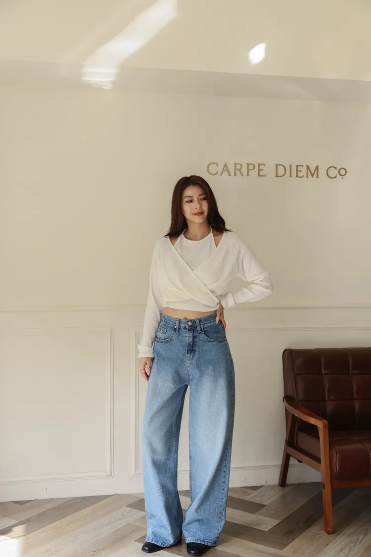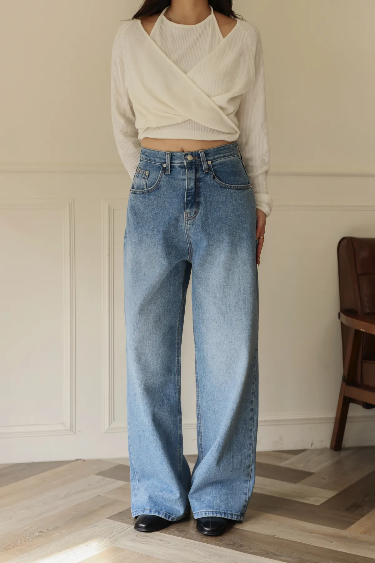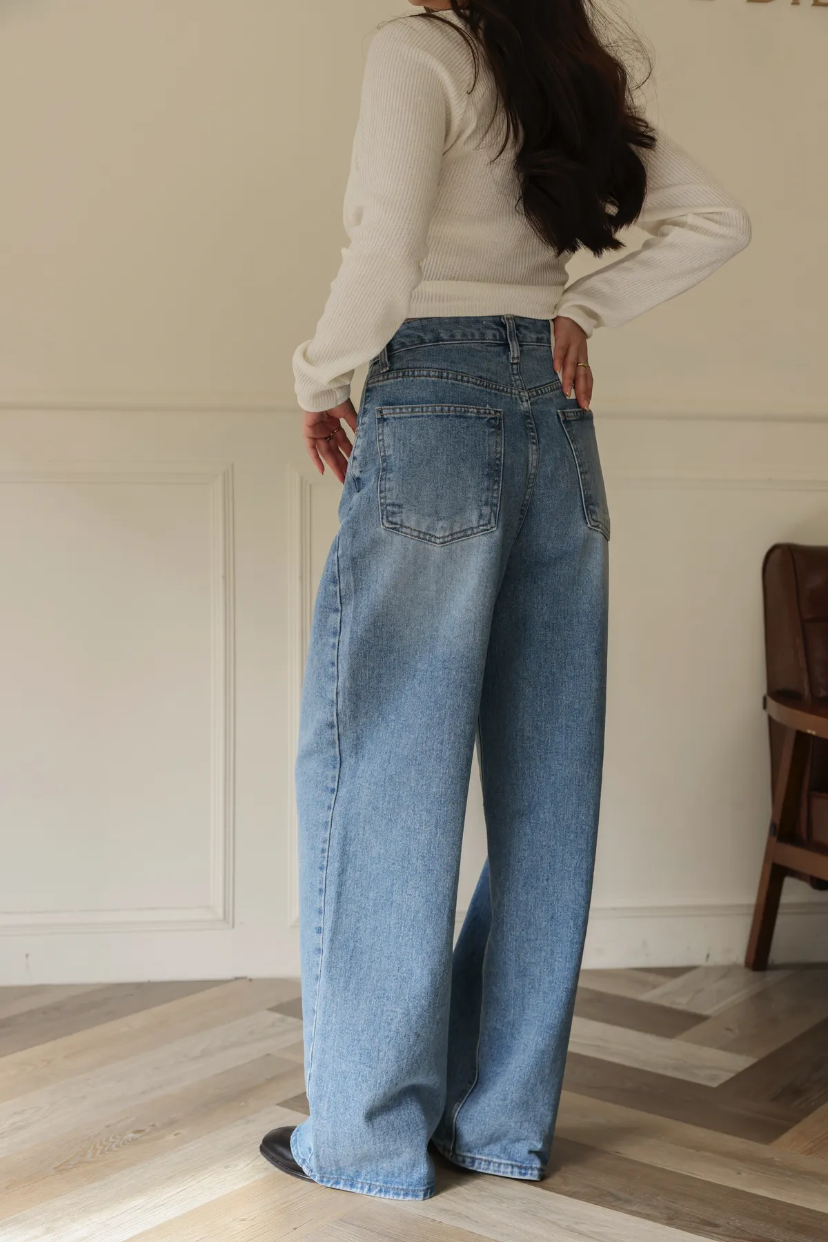 完美褲型微彎刀藏肉淺刷色瘦瘦牛仔寬褲
