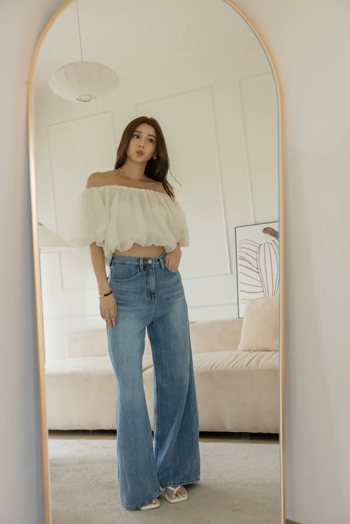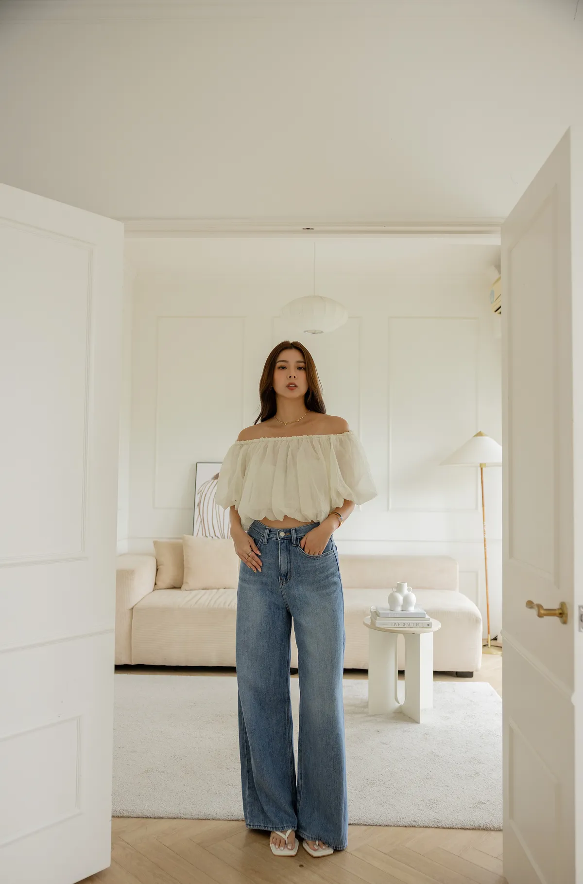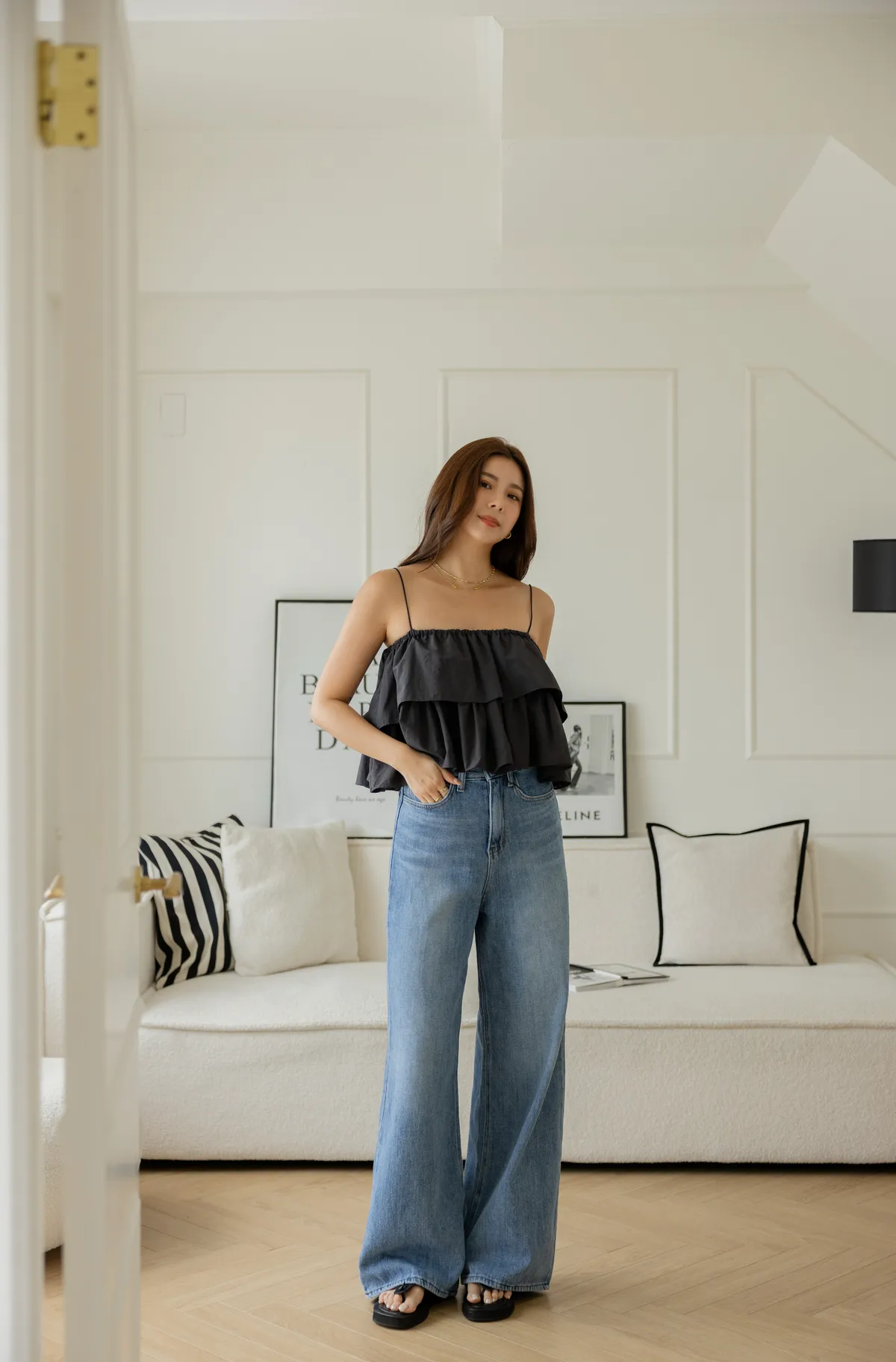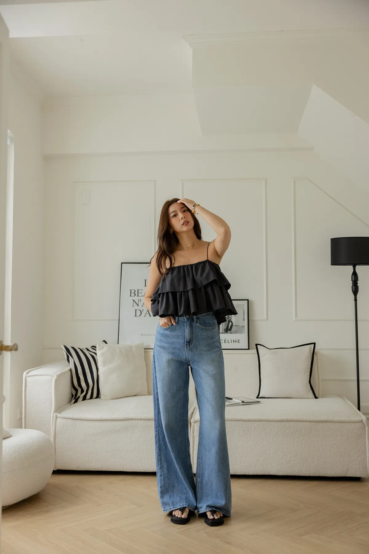 搭配短版上衣 露出腰線 創造胸部以下都是腿!大長腿效果