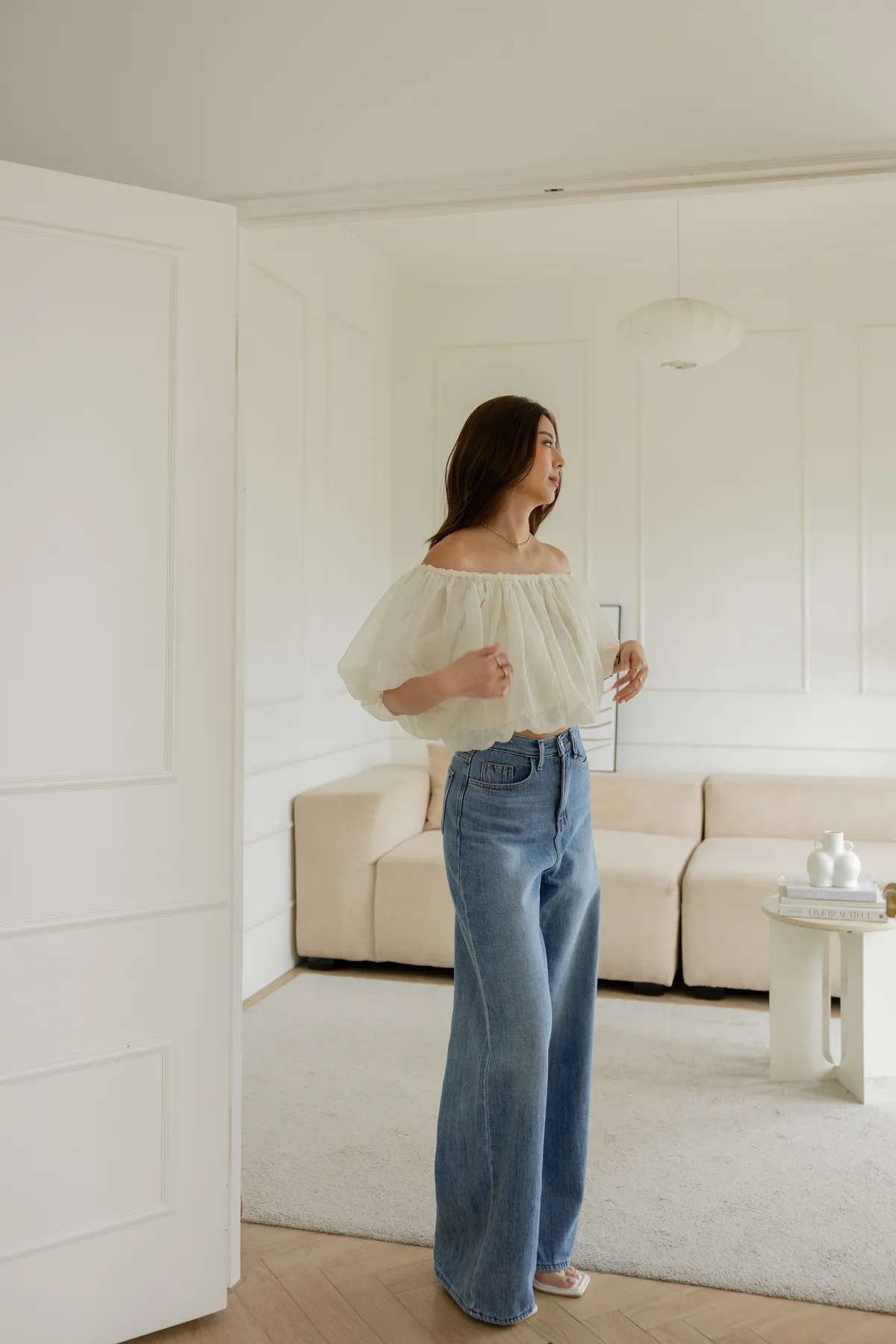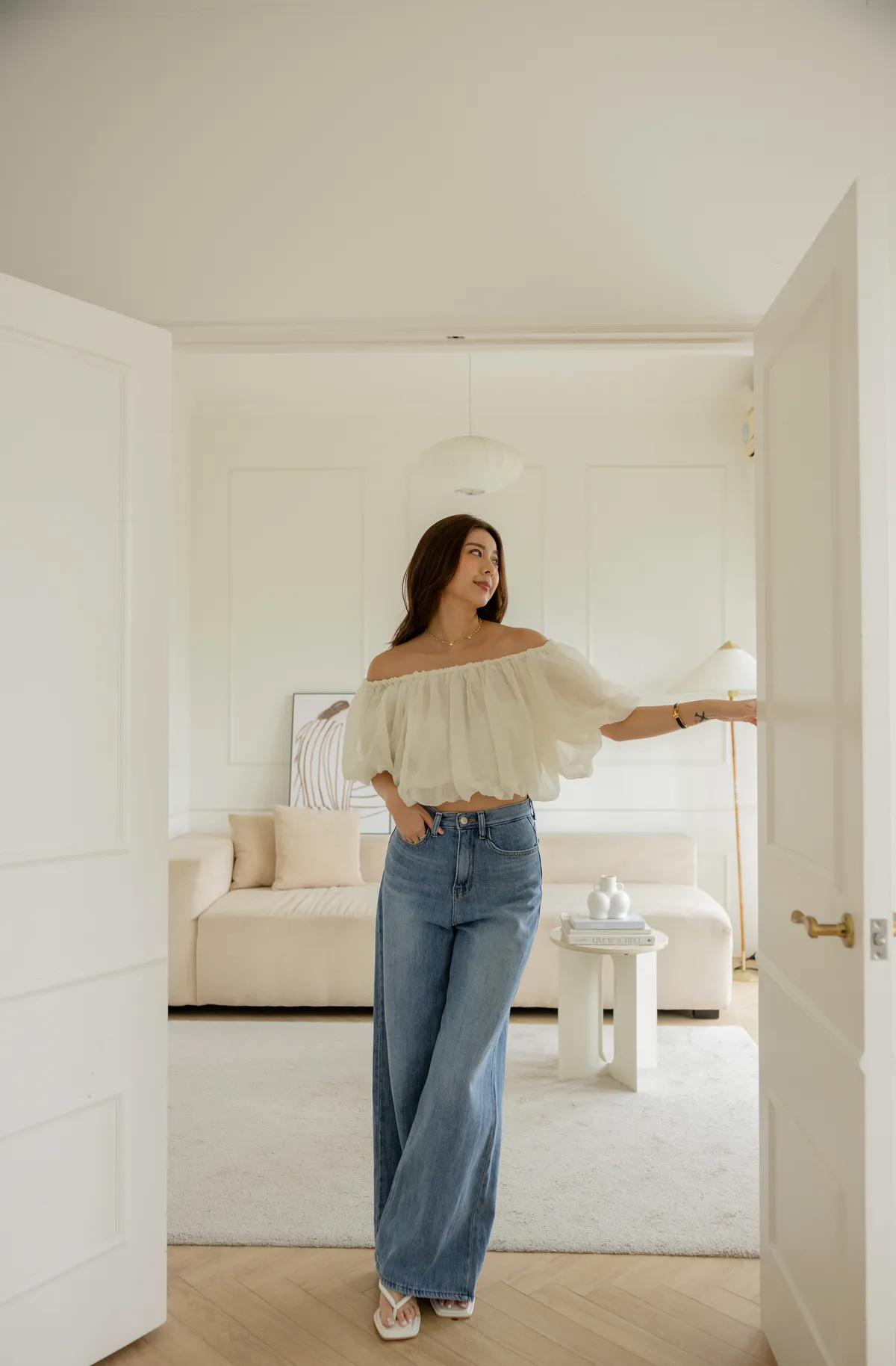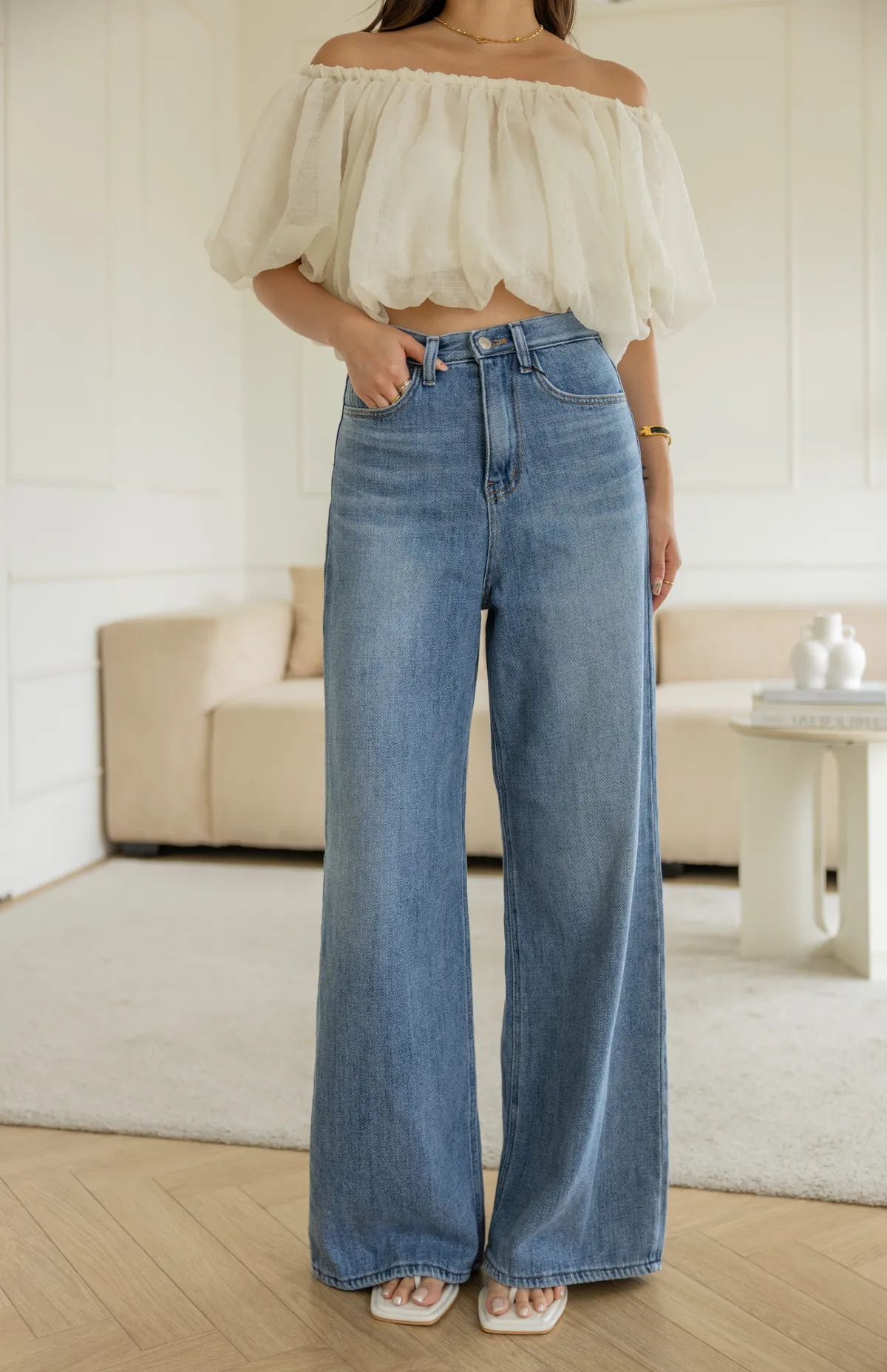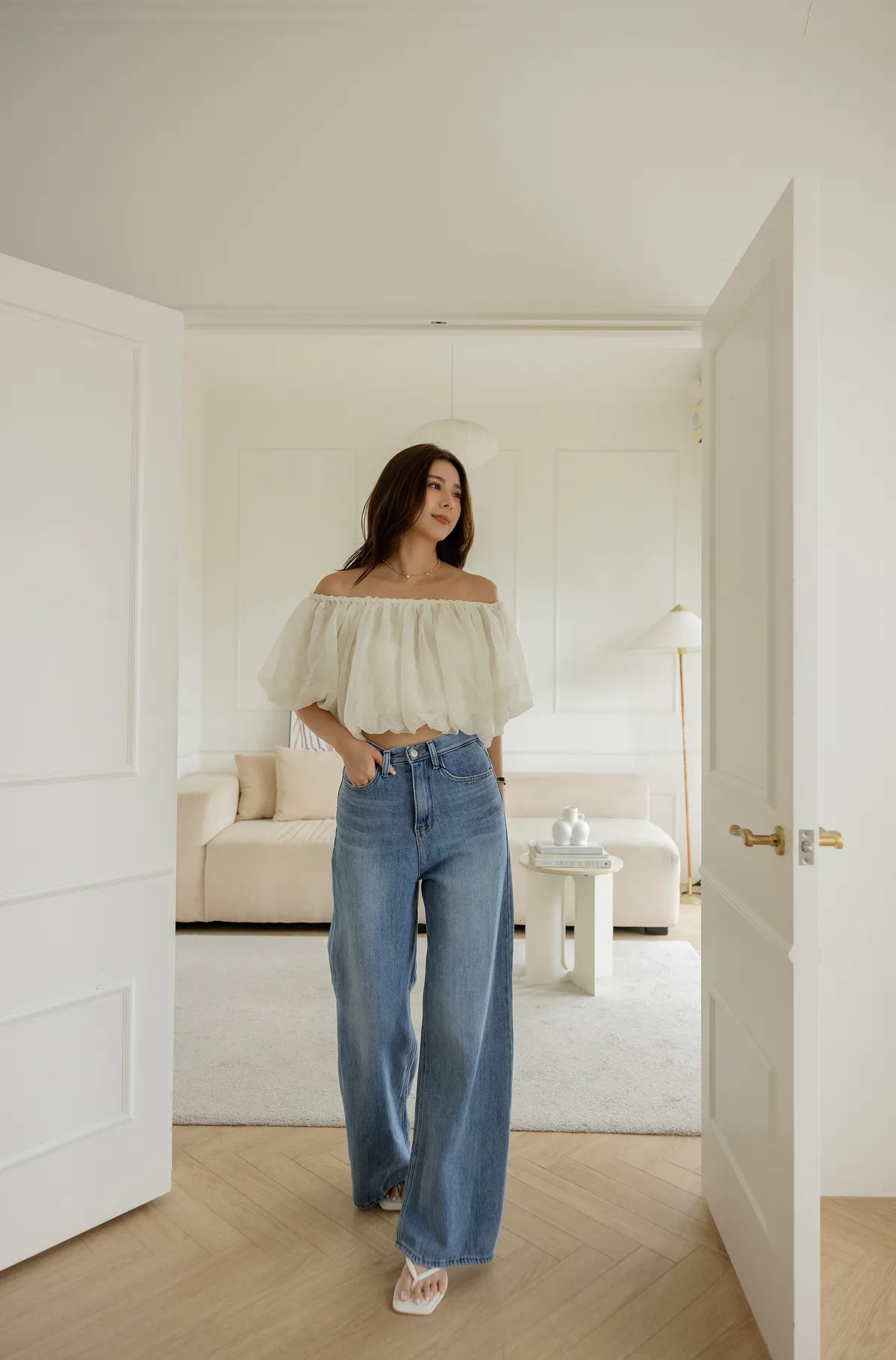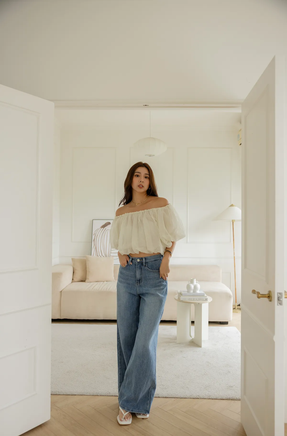 搭配短版上衣 露出腰線 創造胸部以下都是腿!大長腿效果