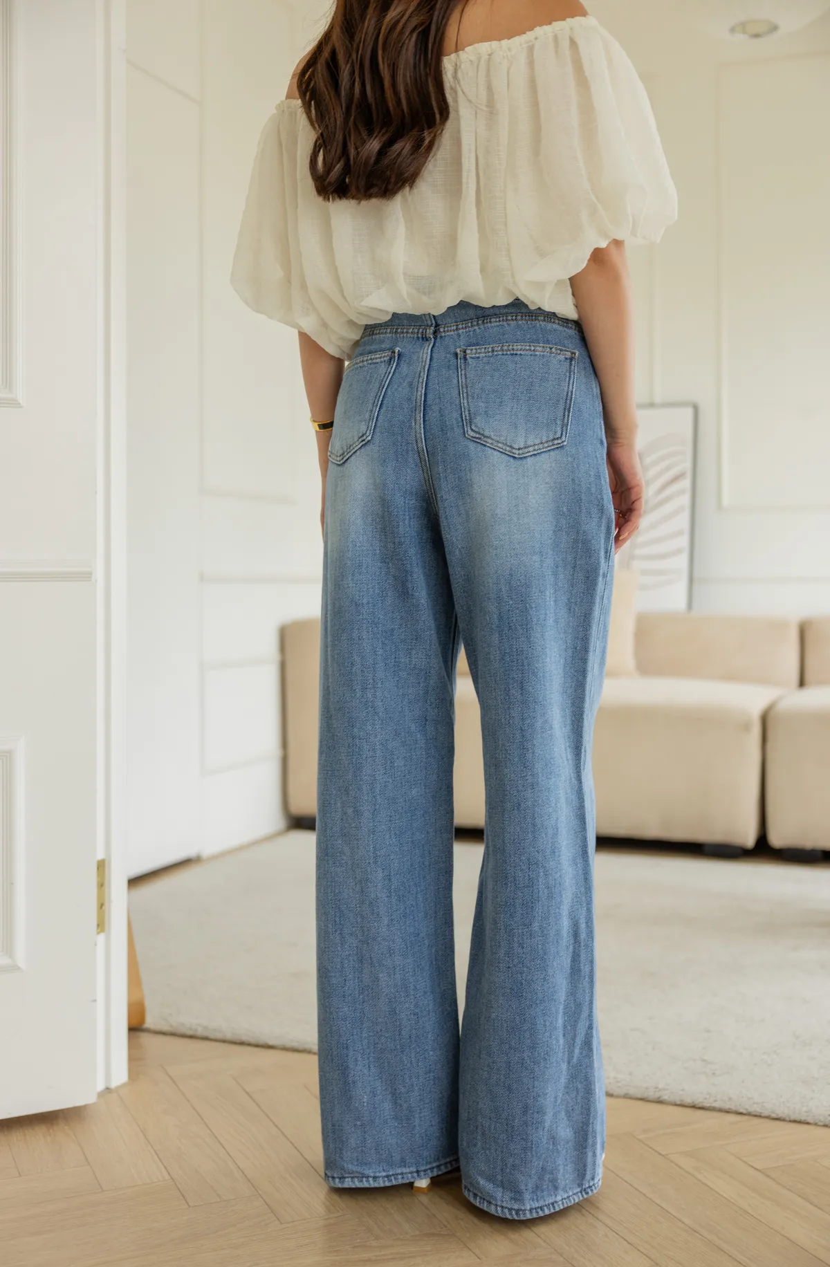 無敵大長腿深刷色薄料落地順身高腰牛仔褲