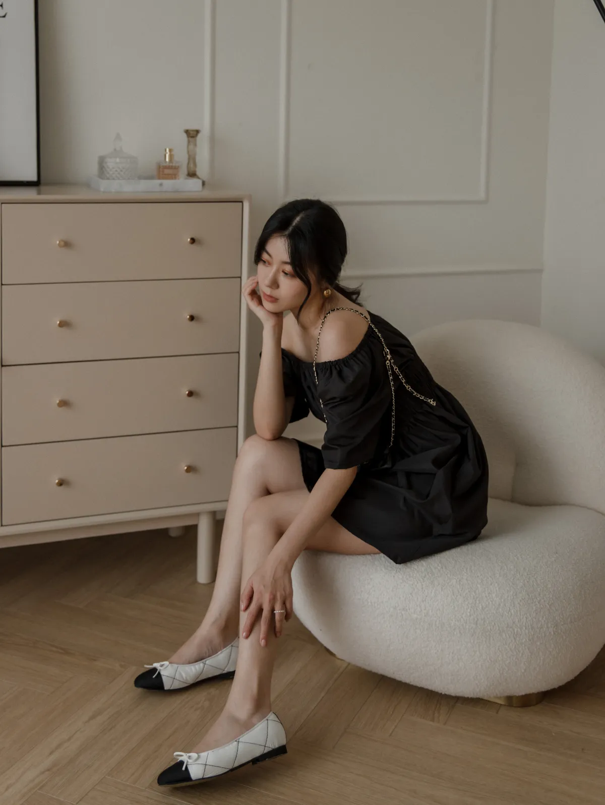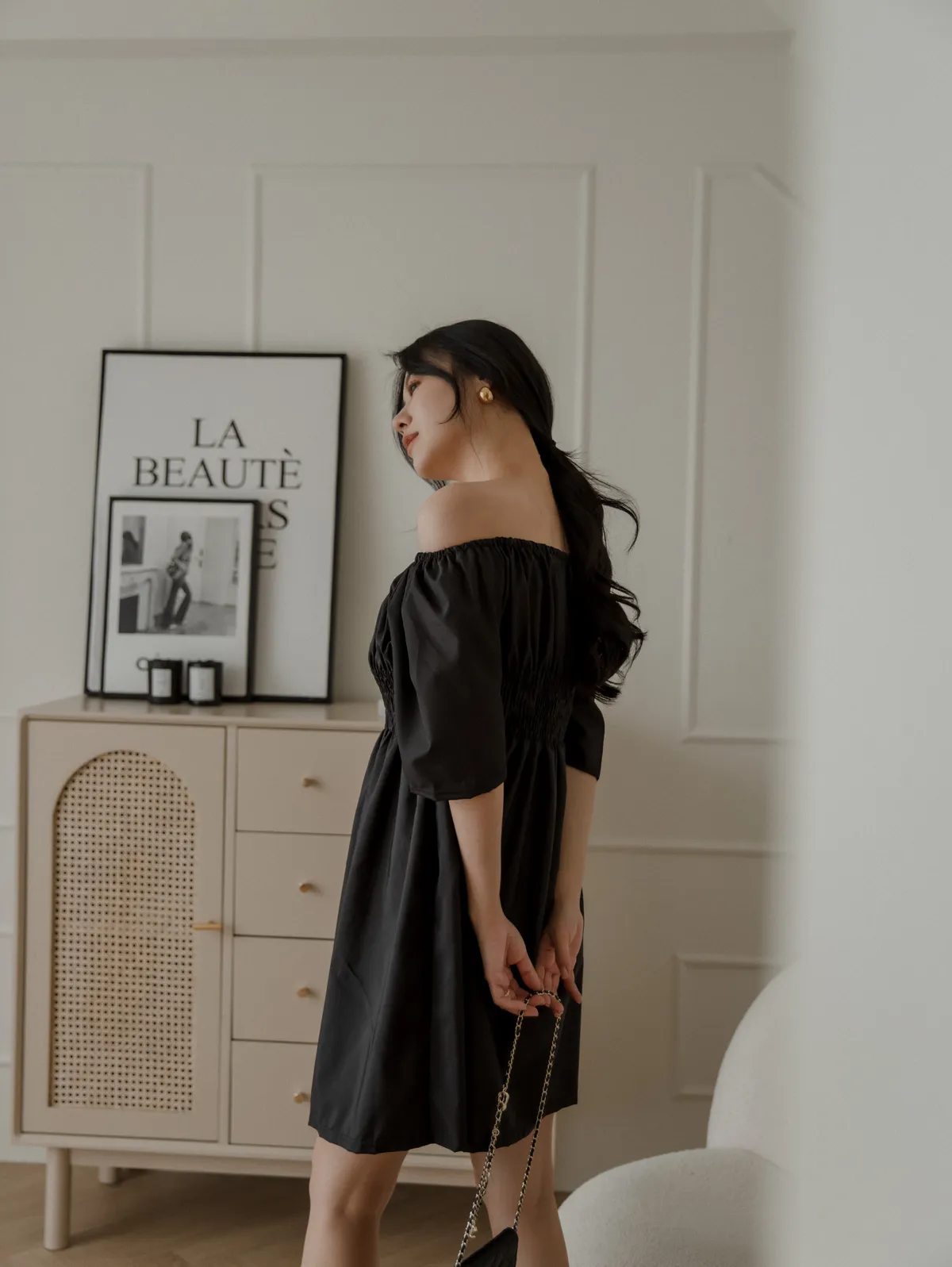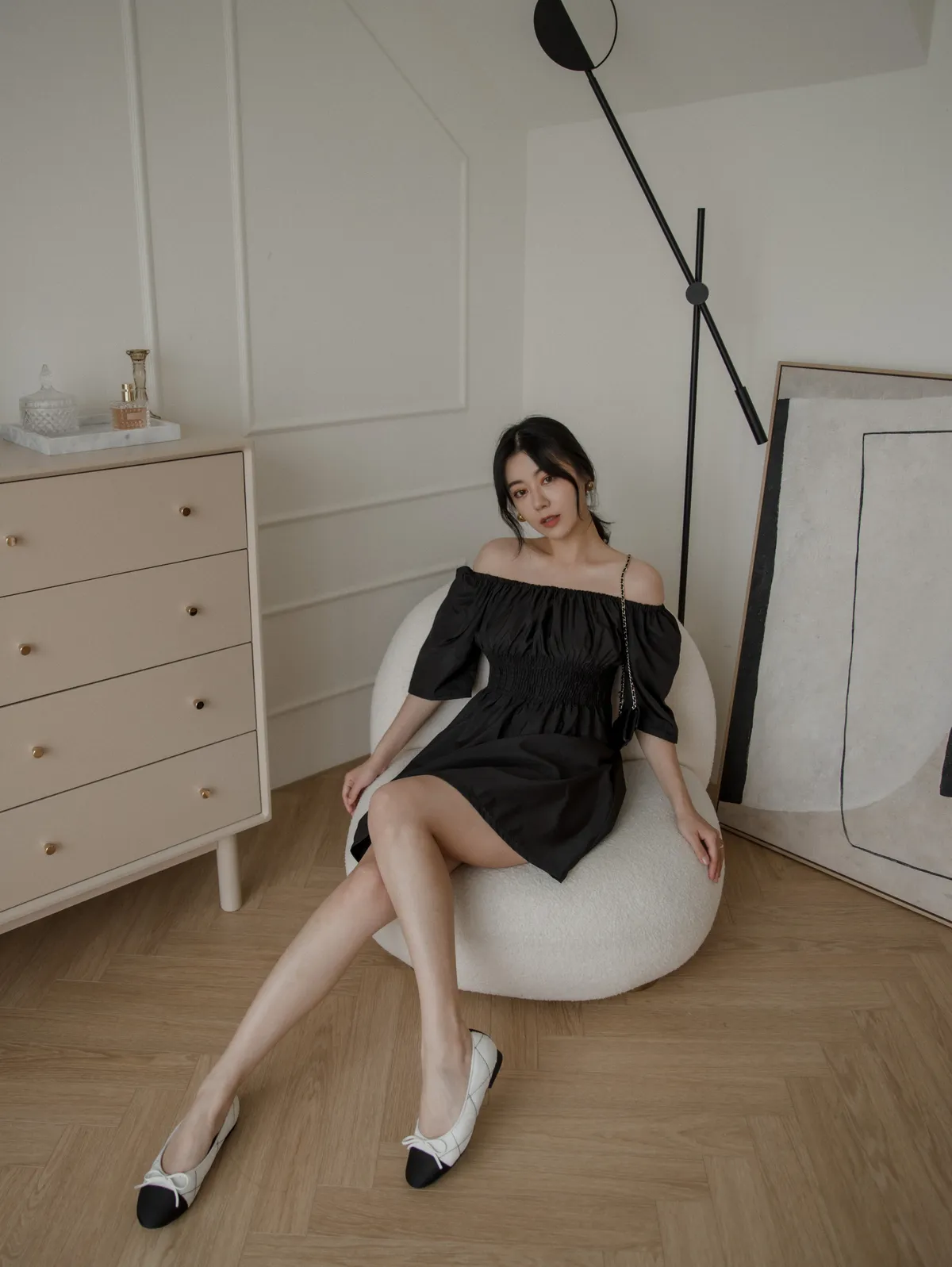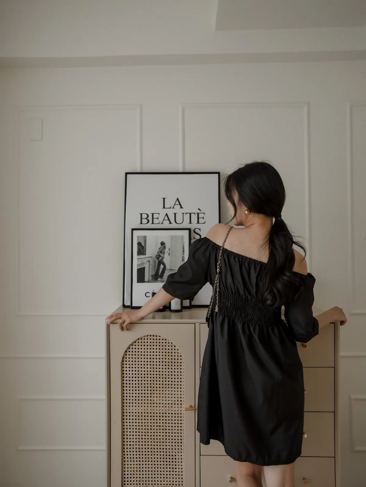 氣質千金小姐姐露肩彈性A字洋裝(黑)