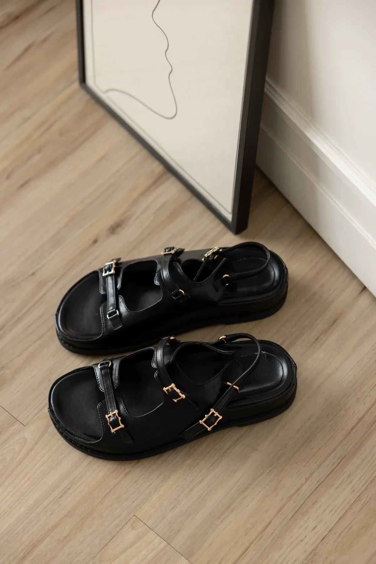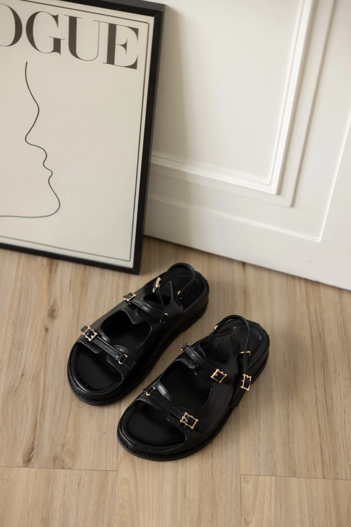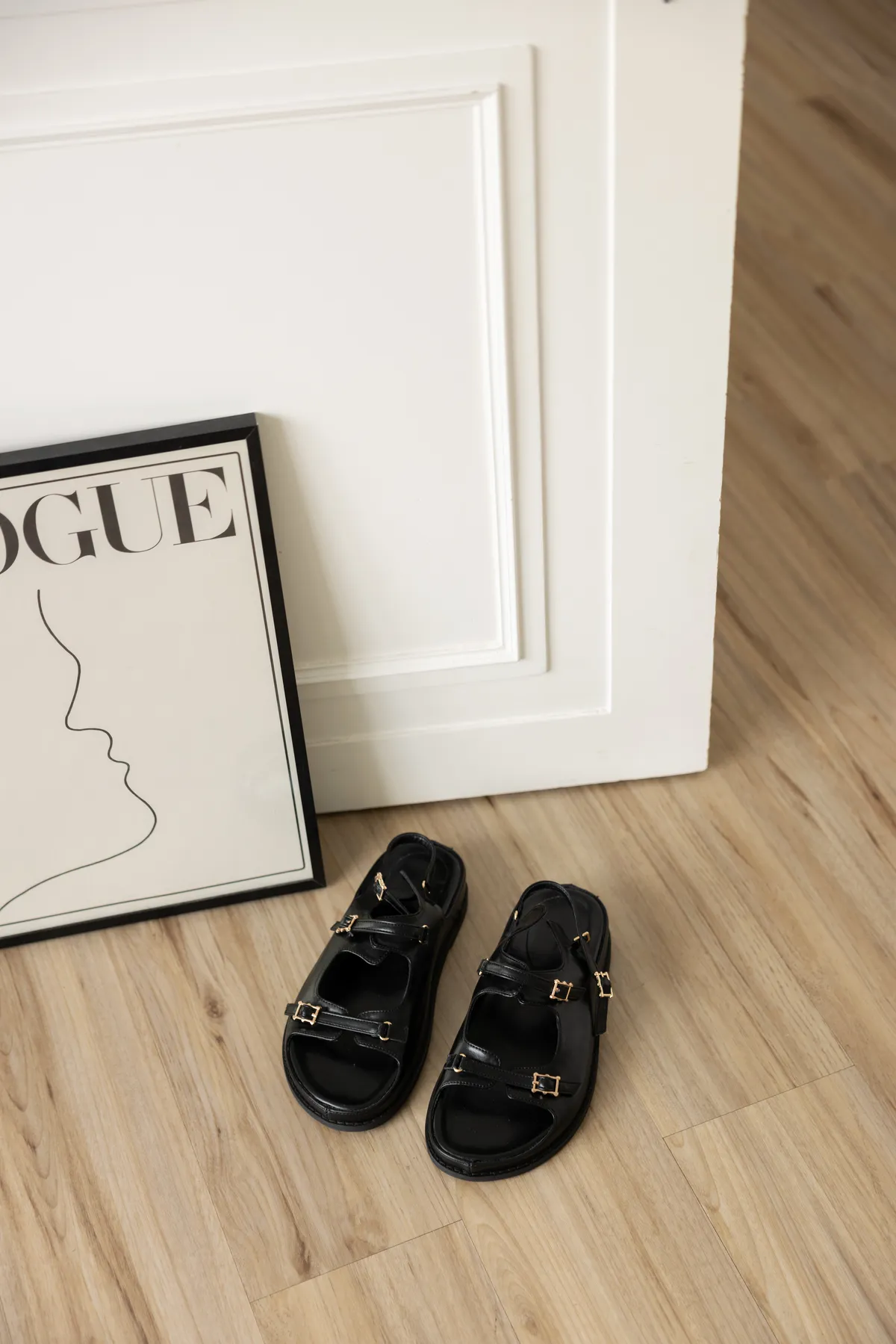 高級大牌感超百搭舒適軟底小香風涼鞋(黑)
