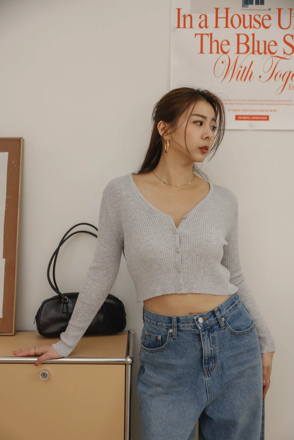 親膚柔軟V領薄料針織小外套(淺灰)