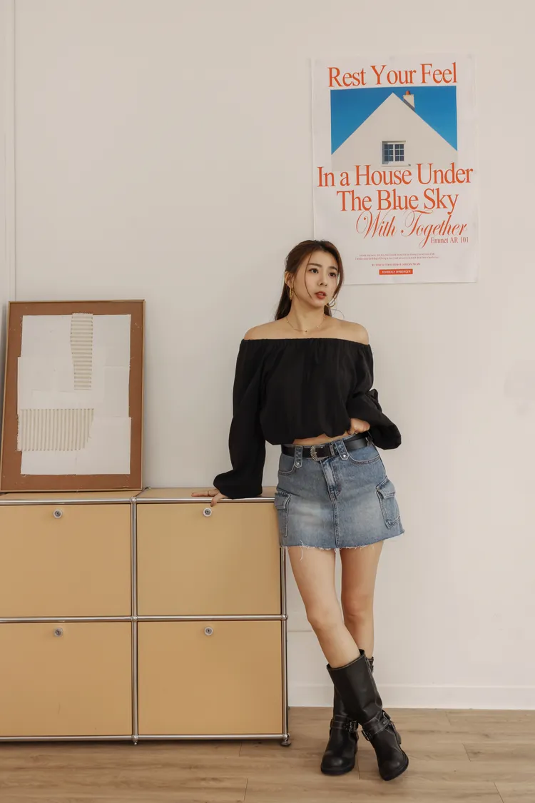 漂亮姐姐A字型下擺不收邊工裝牛仔褲裙