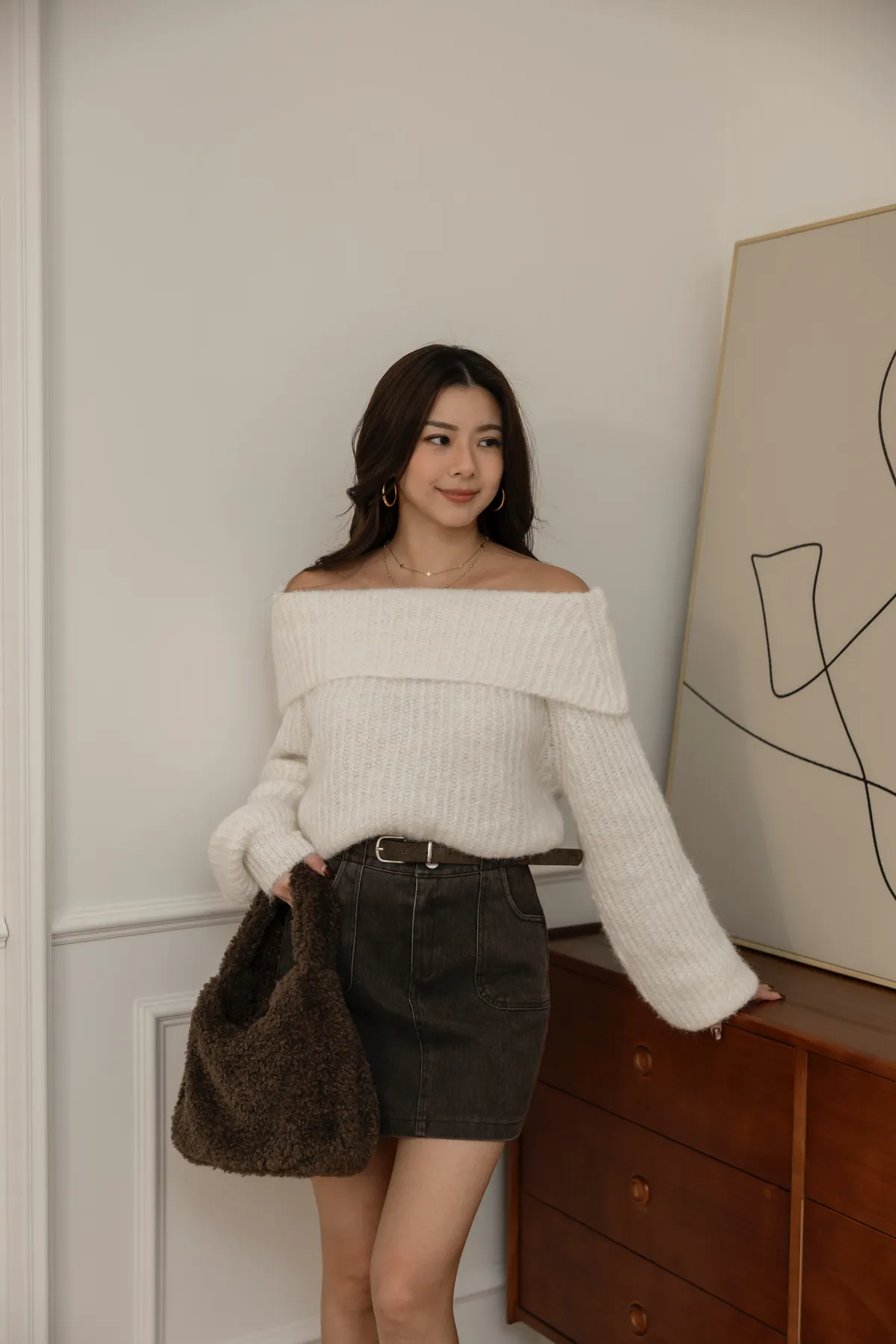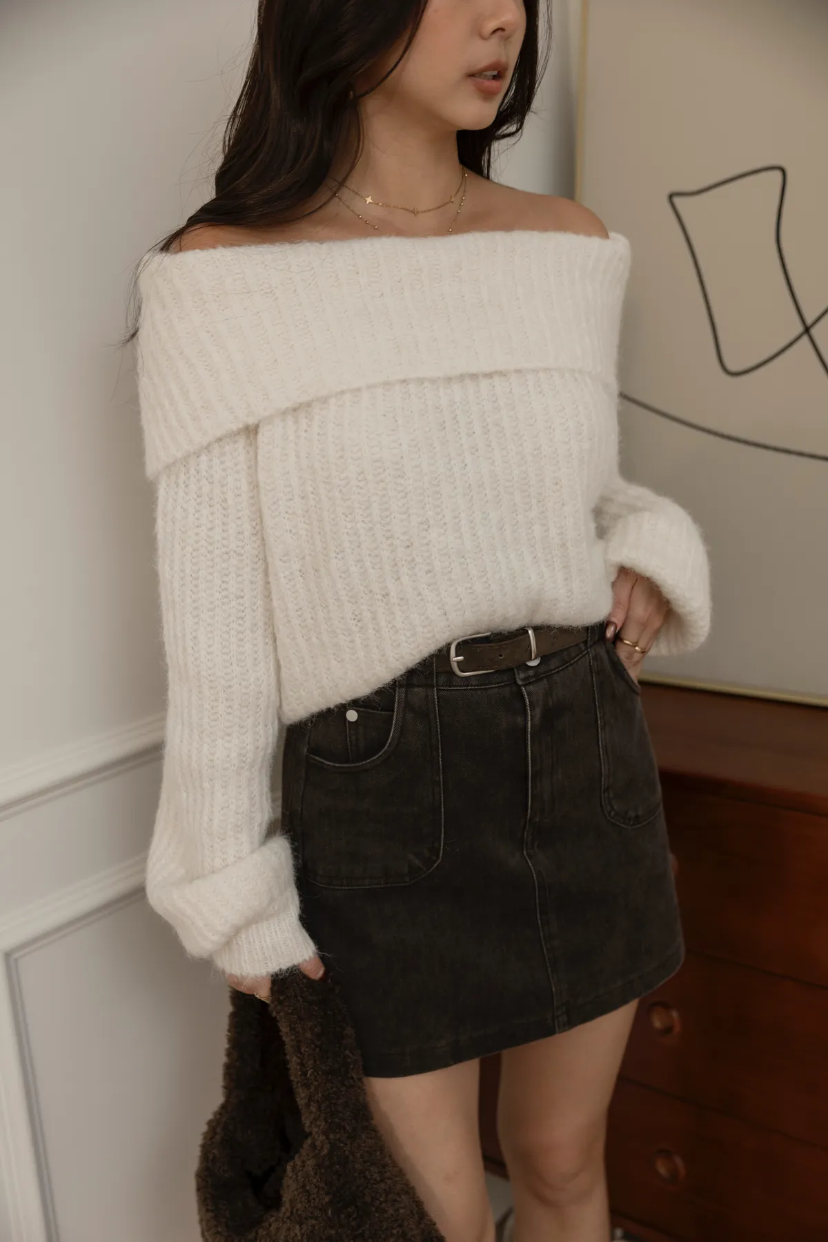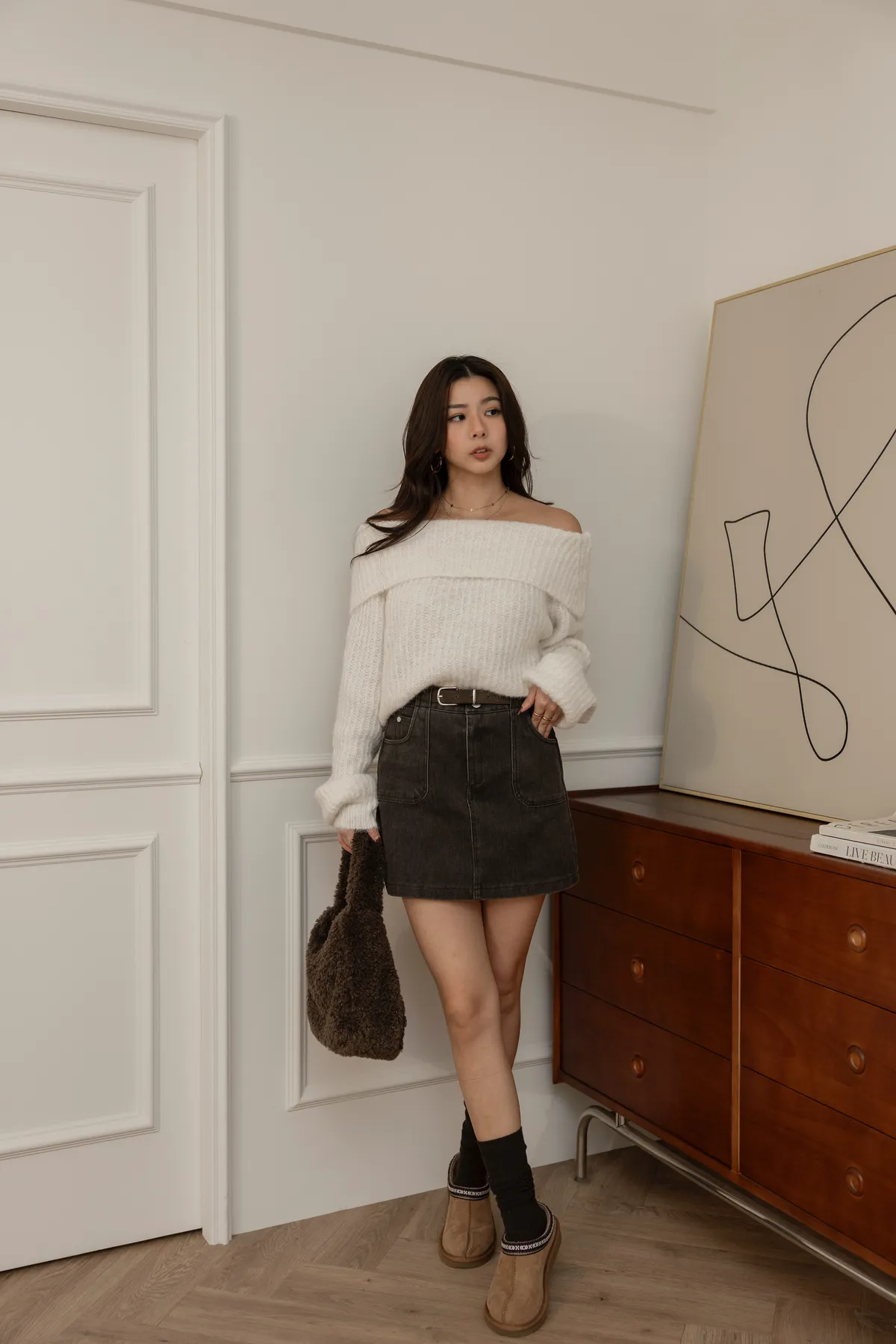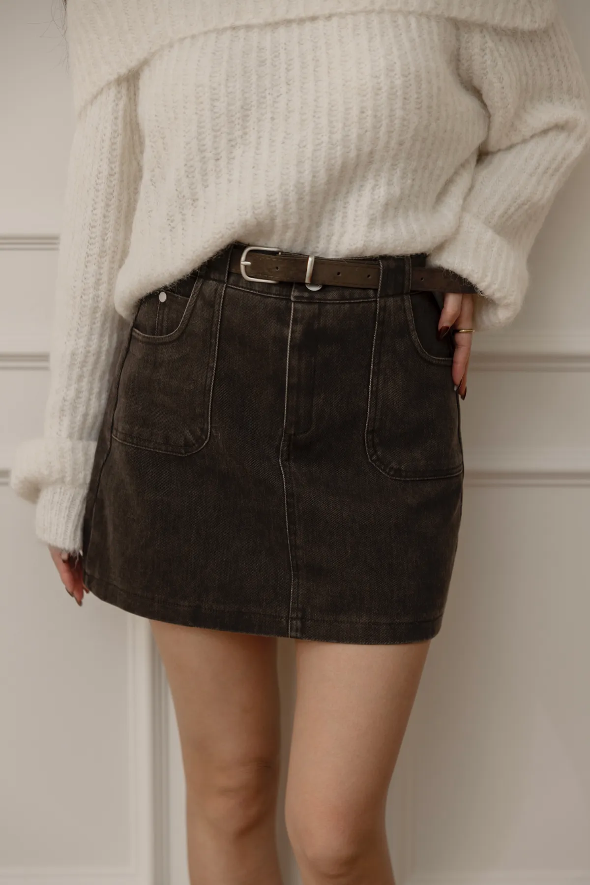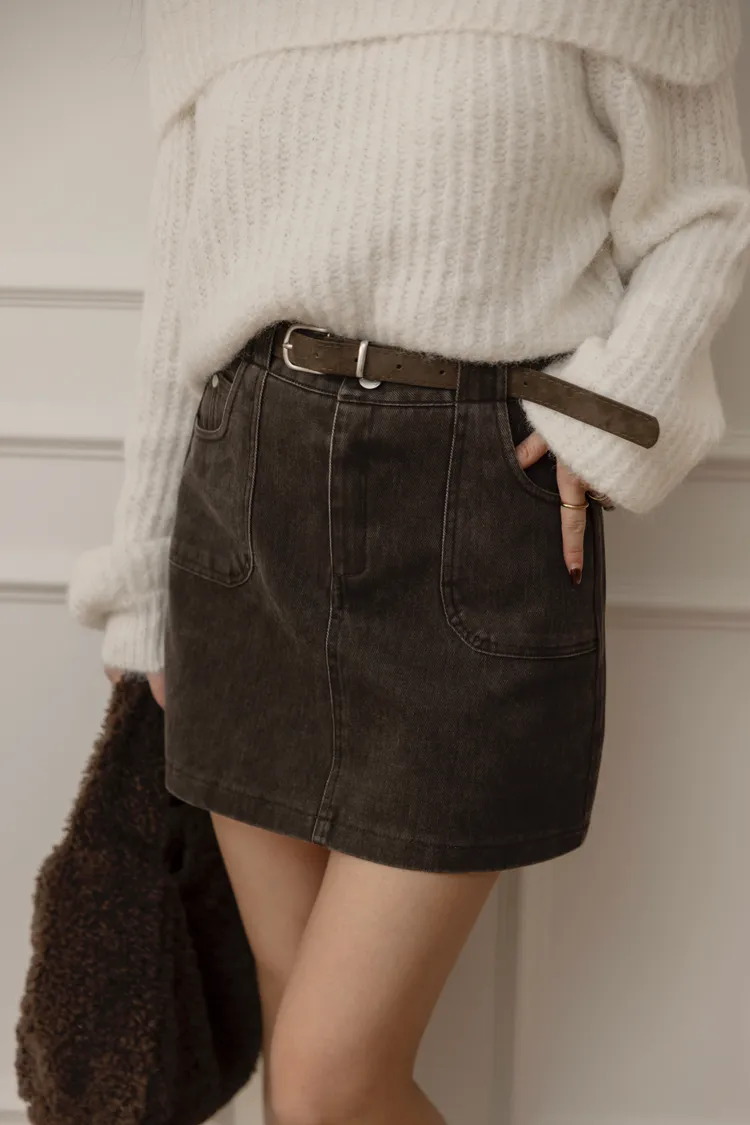 -5kg修身A字牛仔短褲裙附皮帶(咖)