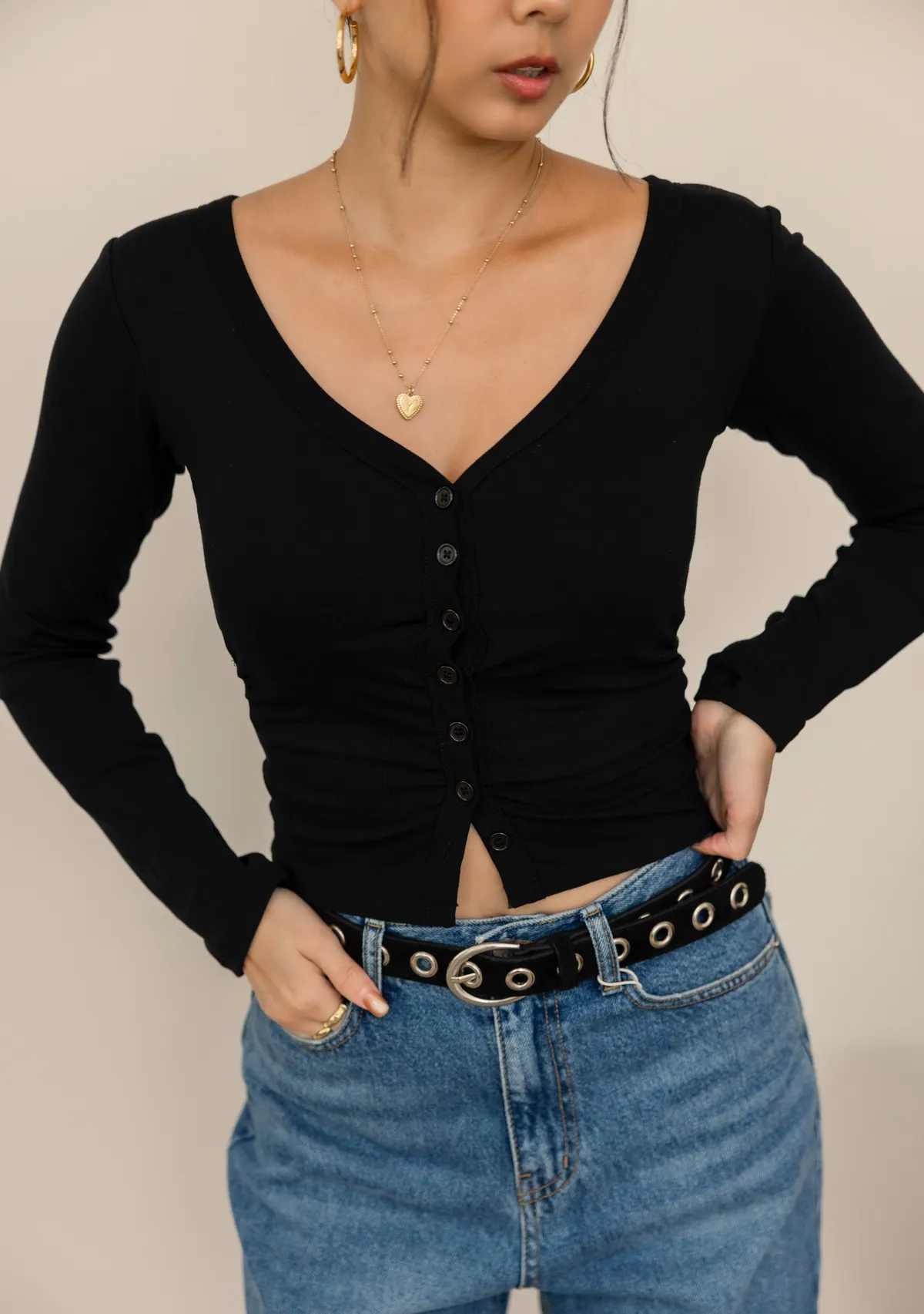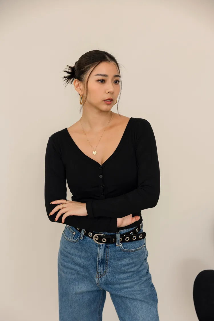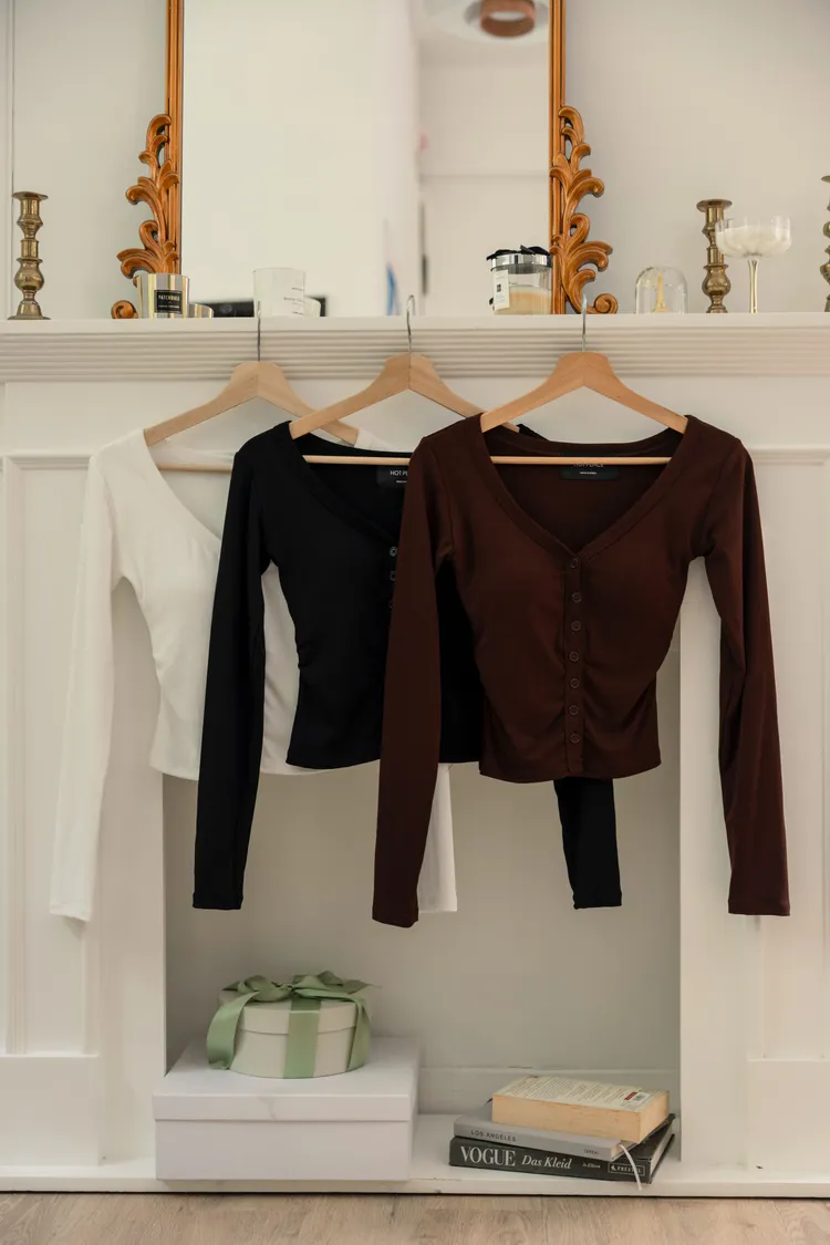 V領開扣親膚彈性帶胸墊棉料上衣(三色)