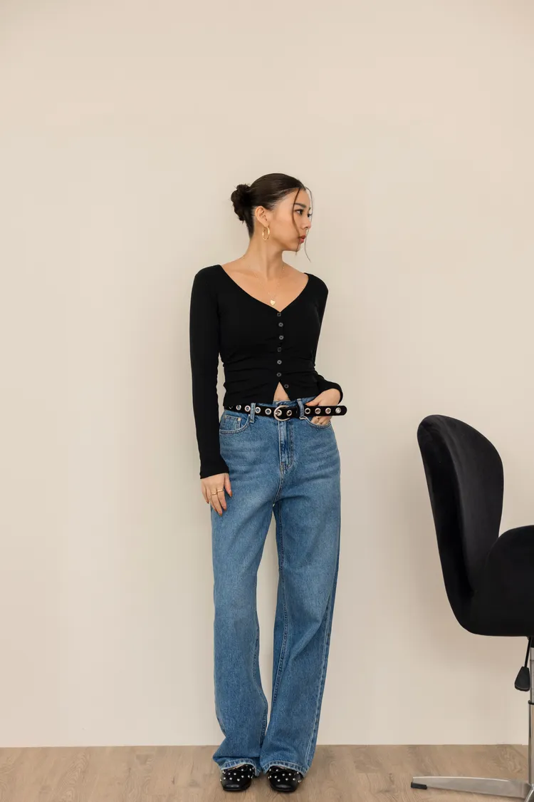 時髦破表完美修飾深刷色直筒牛仔落地褲