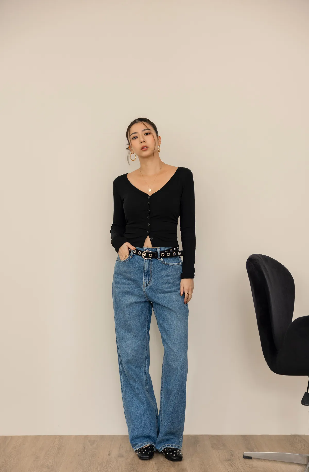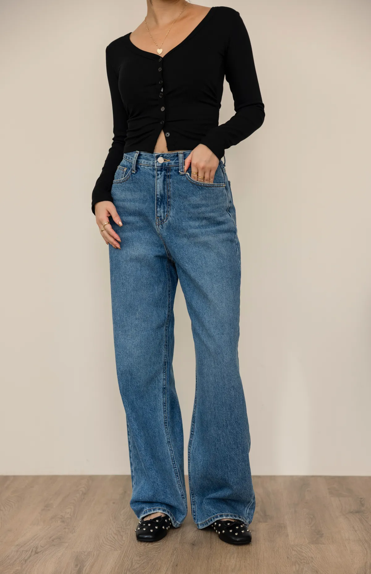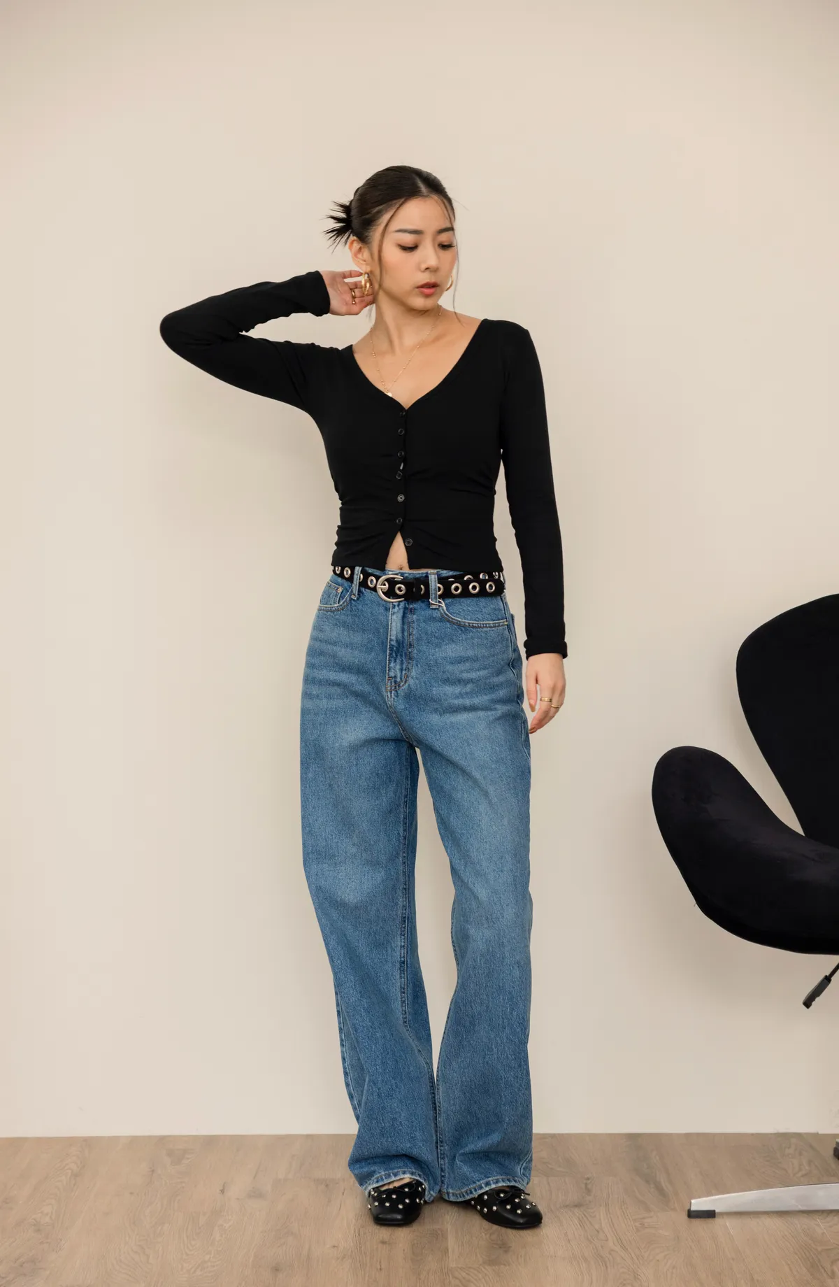 一年四季款的牛仔布料 版型正常 中高腰
