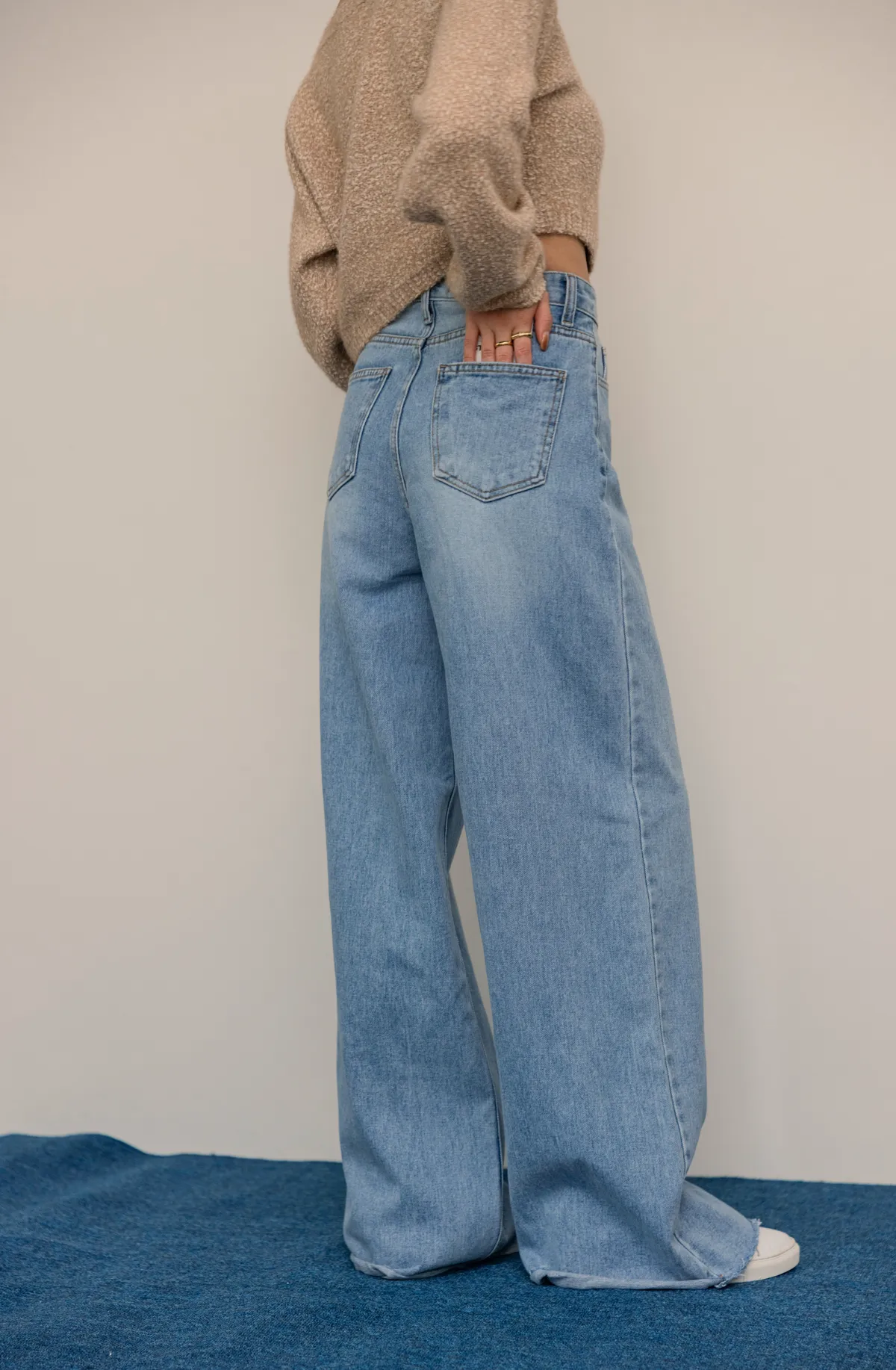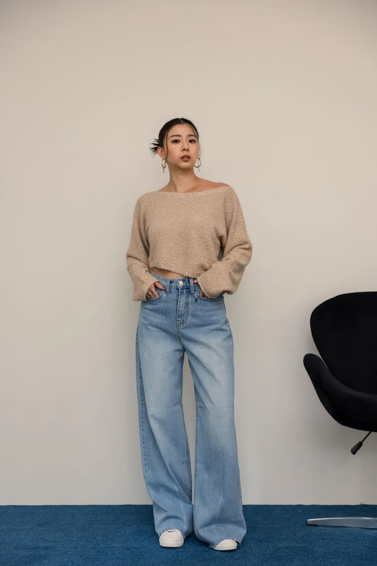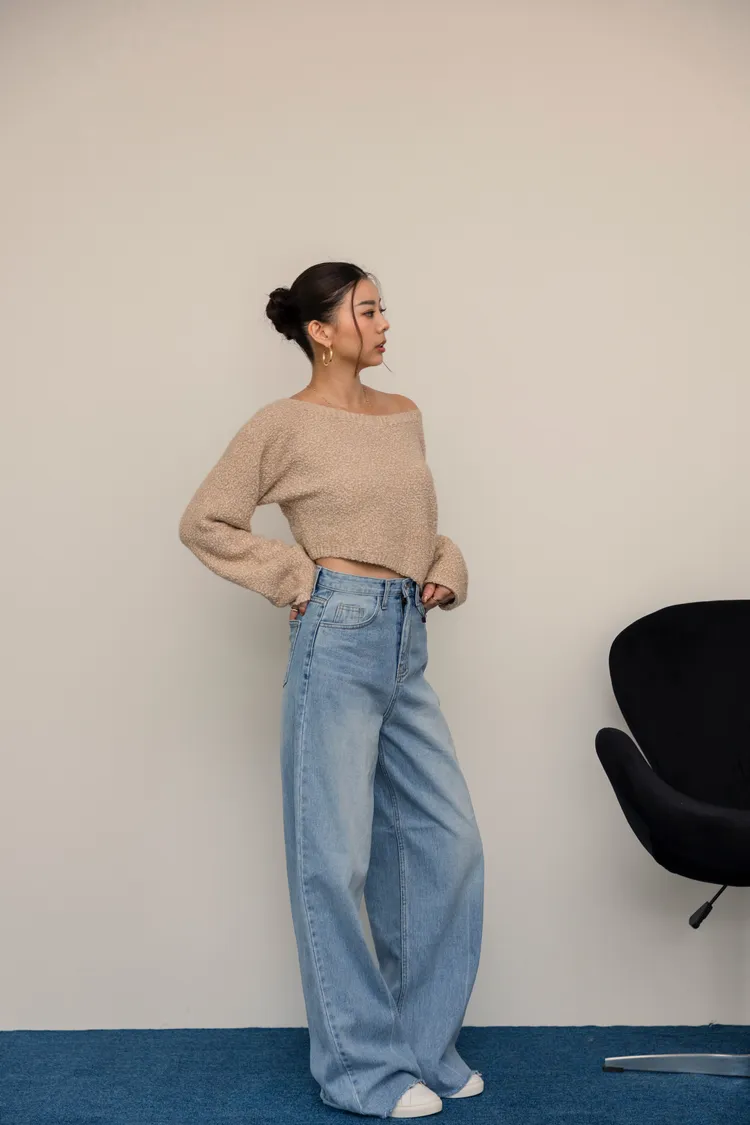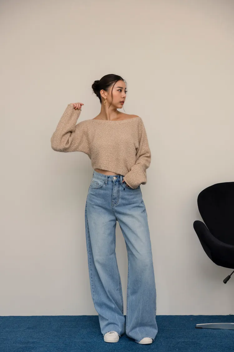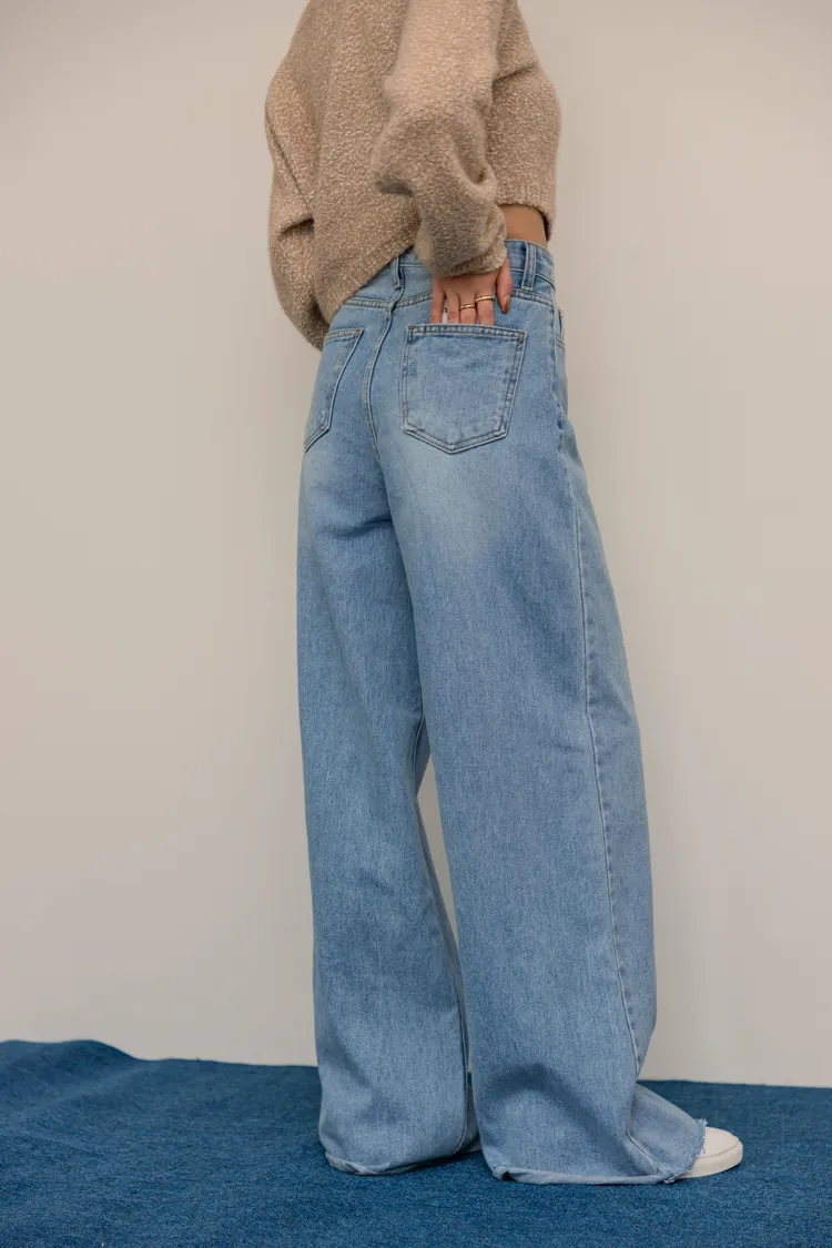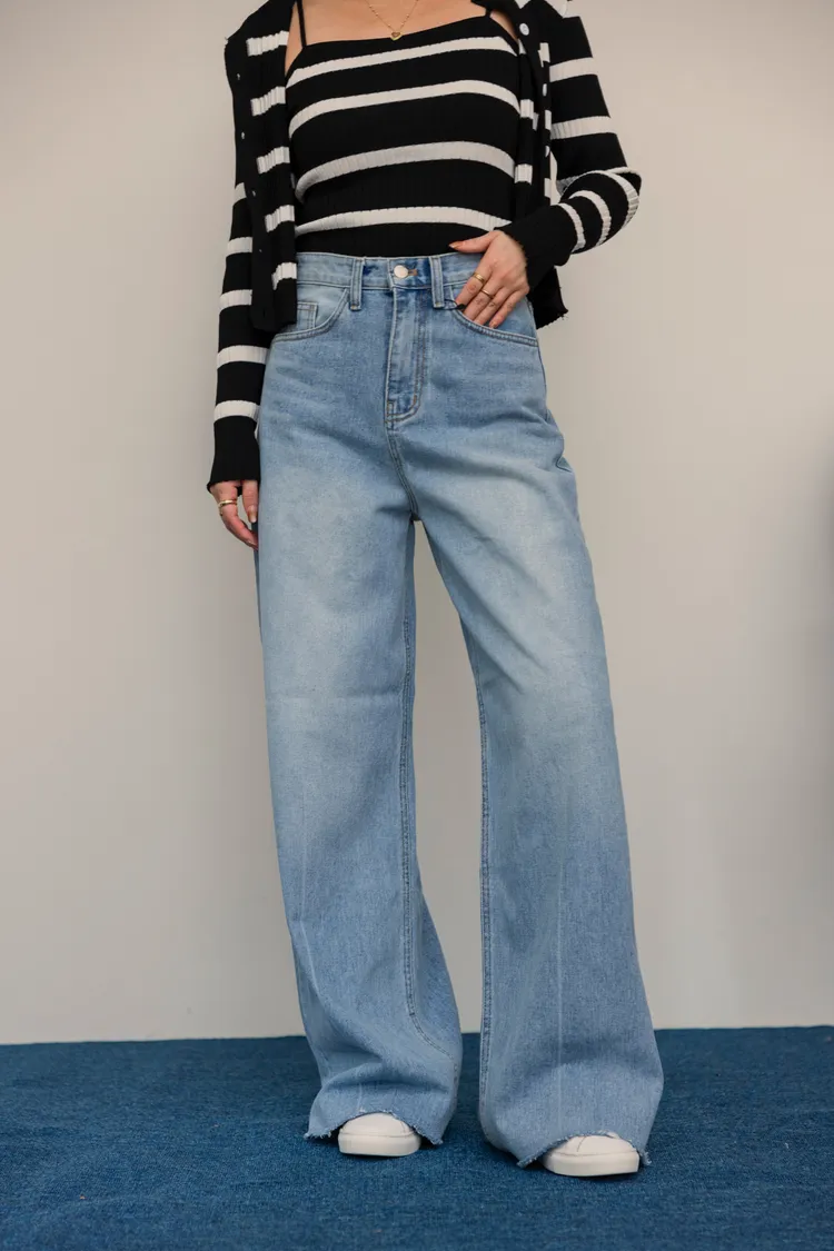 -5kg超藏肉瘦瘦淺刷色不休邊落地牛仔寬褲