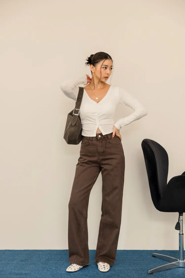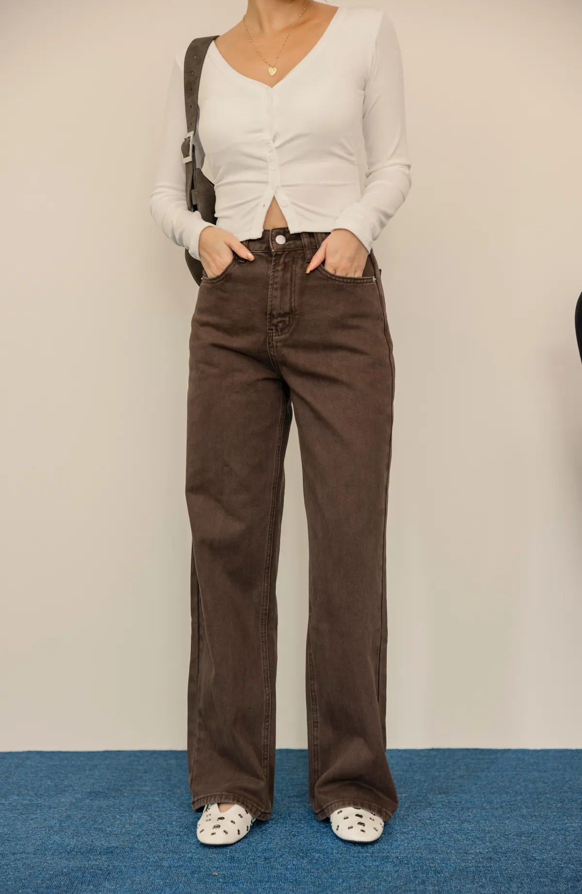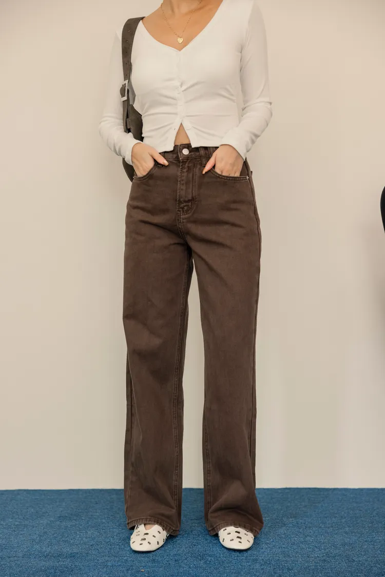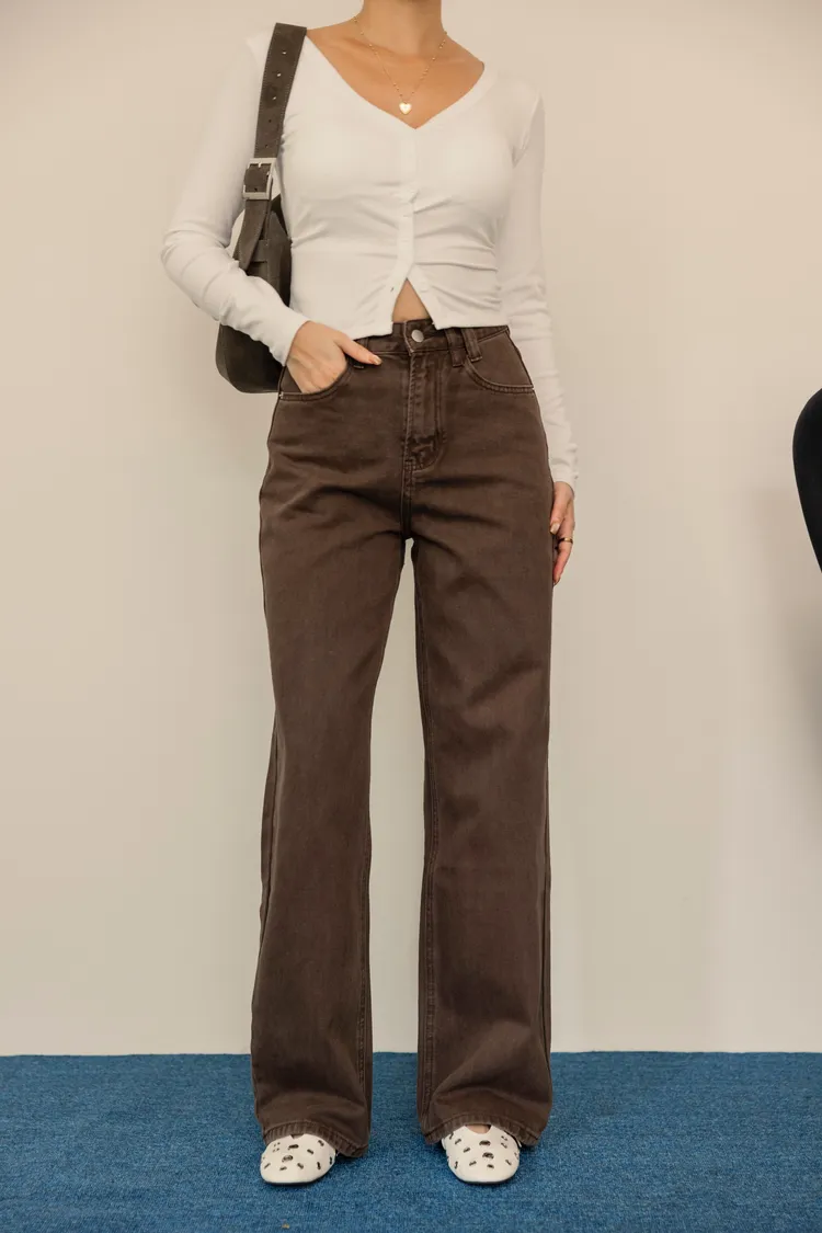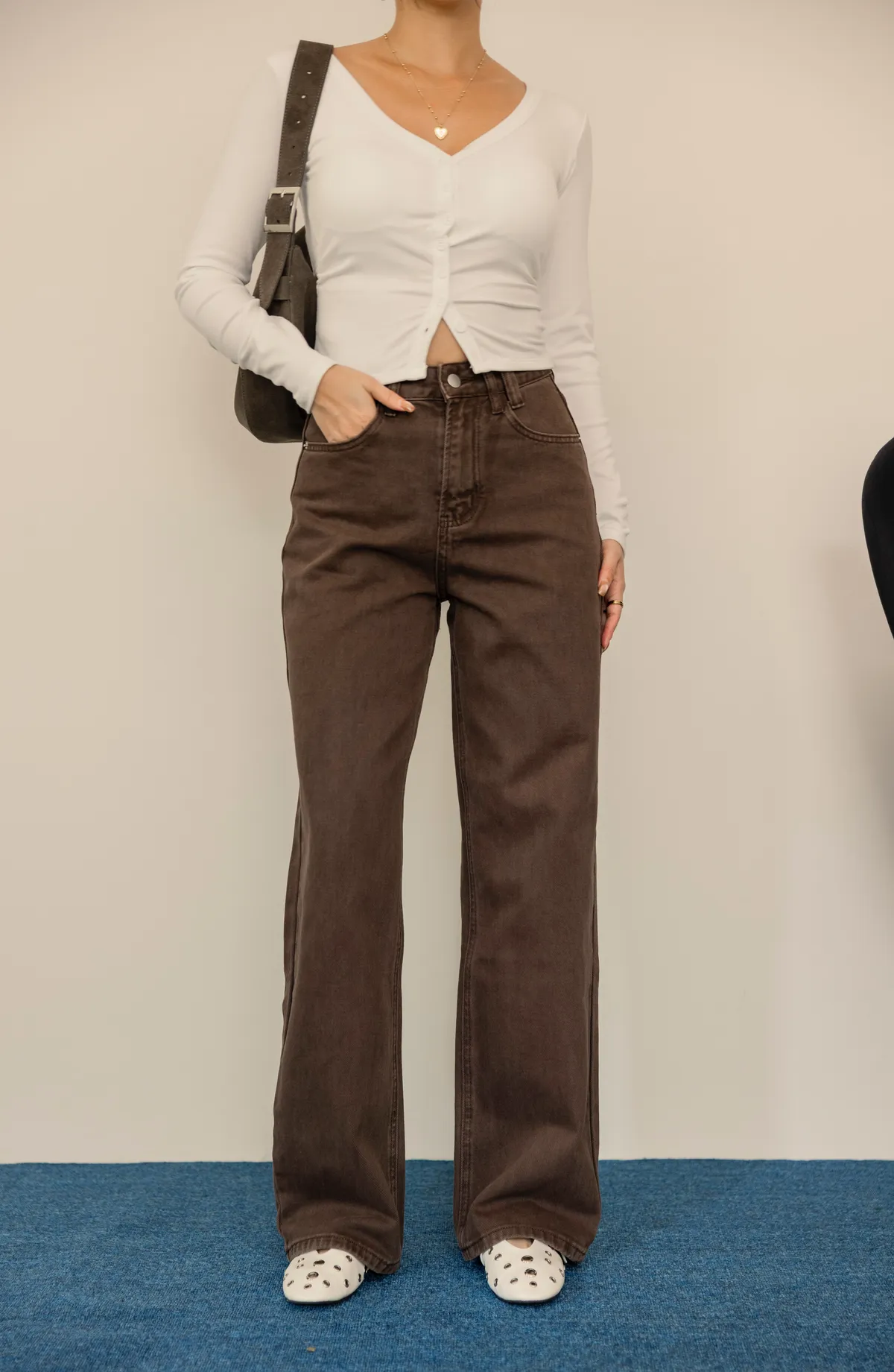 修飾身材摩卡可可刷色直筒牛仔寬褲