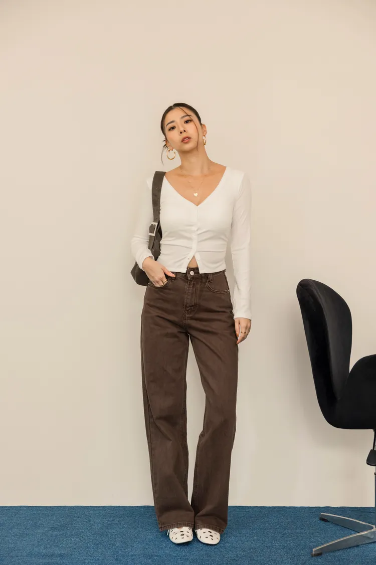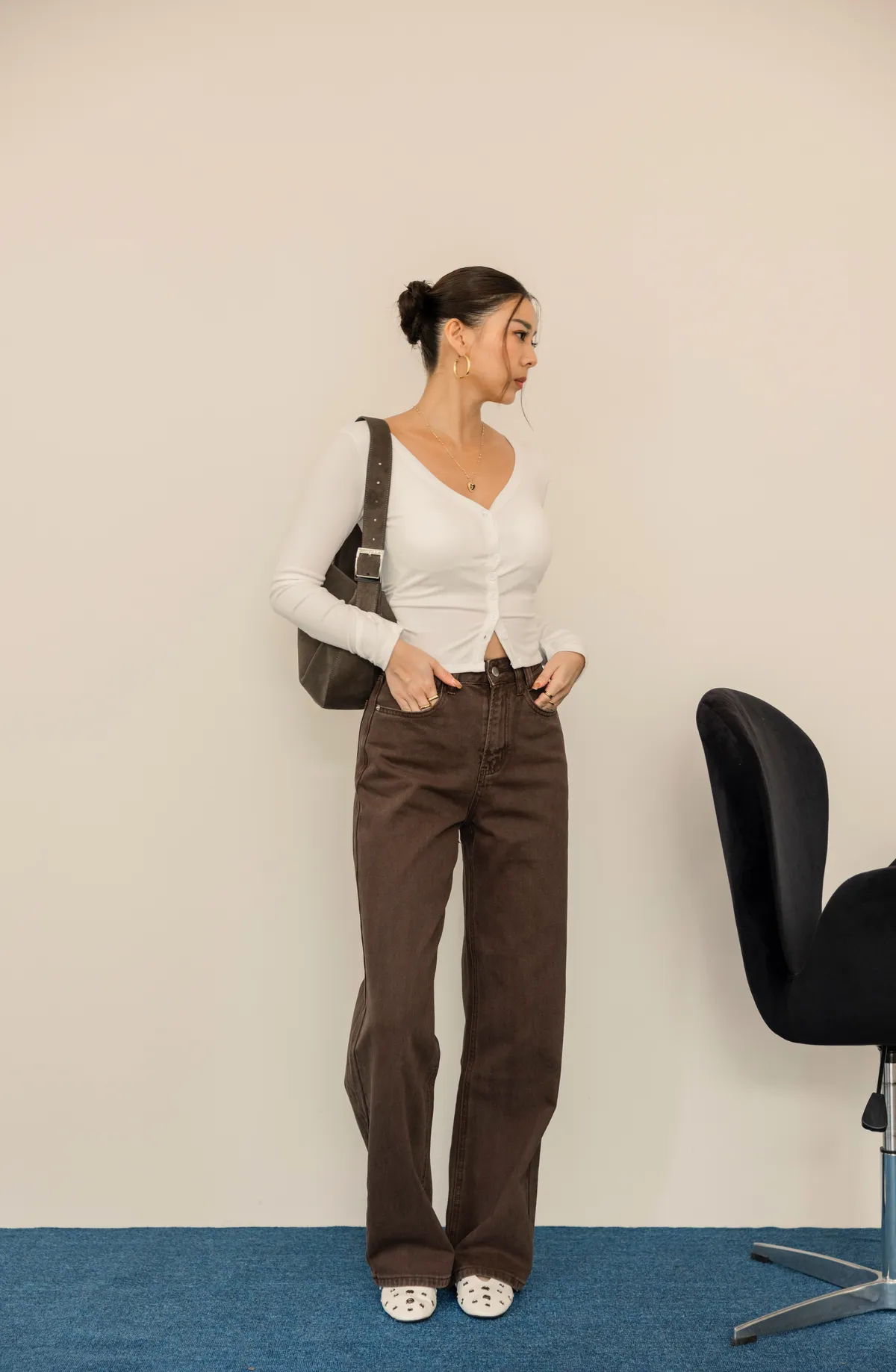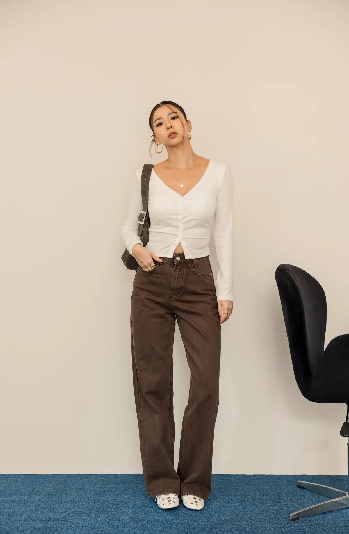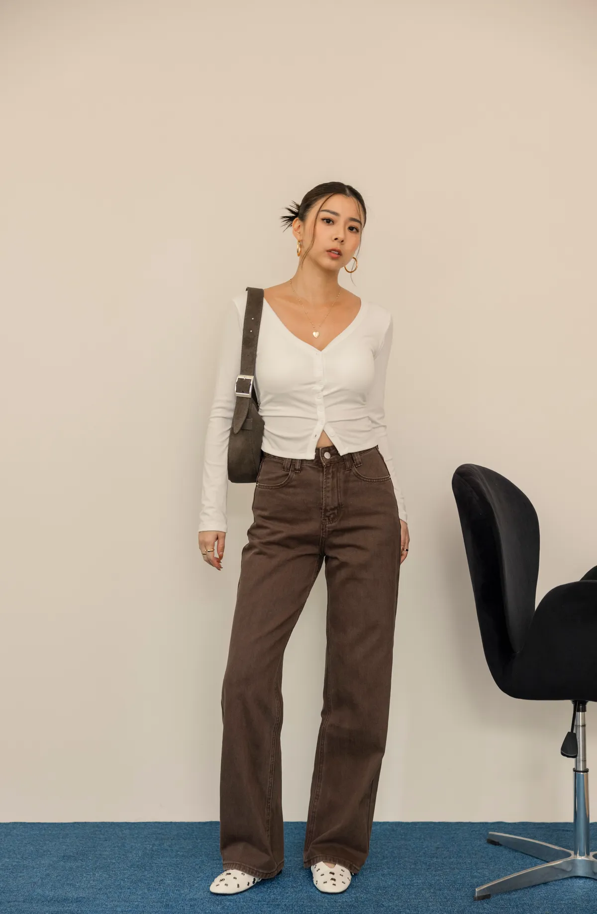 修飾身材摩卡可可刷色直筒牛仔寬褲