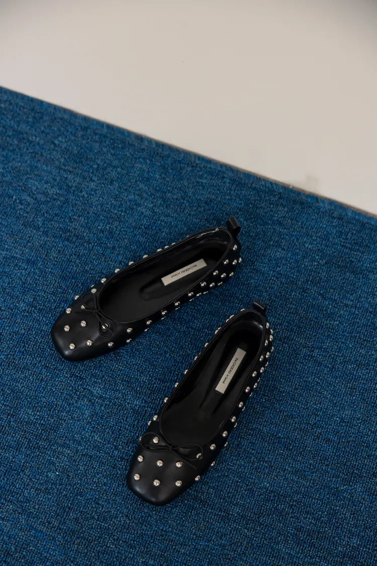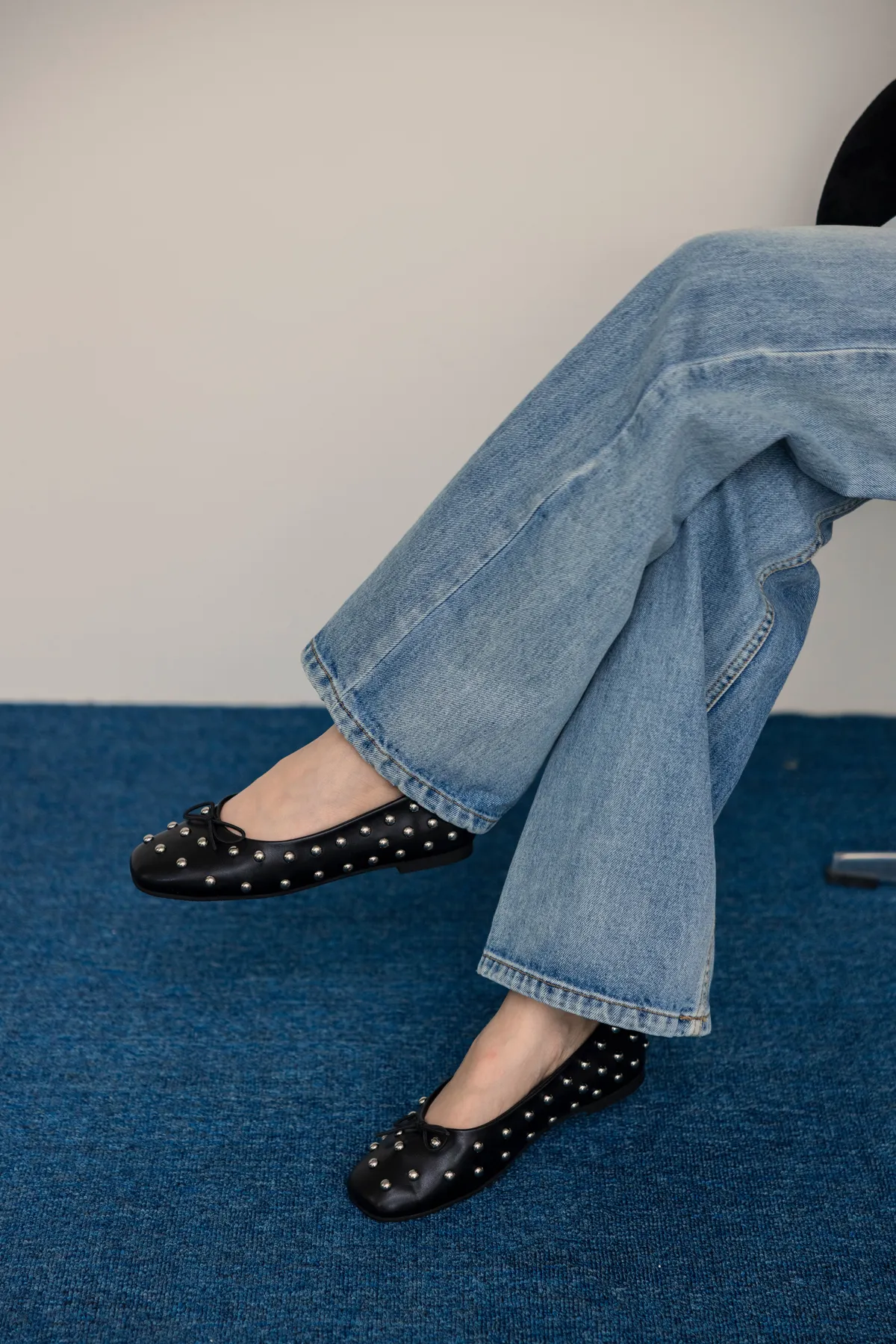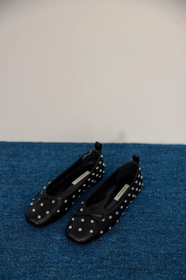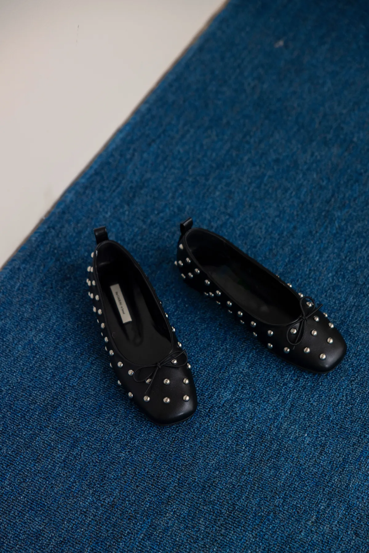 必買!方頭鉚釘珠珠軟皮質舒服好走平底鞋