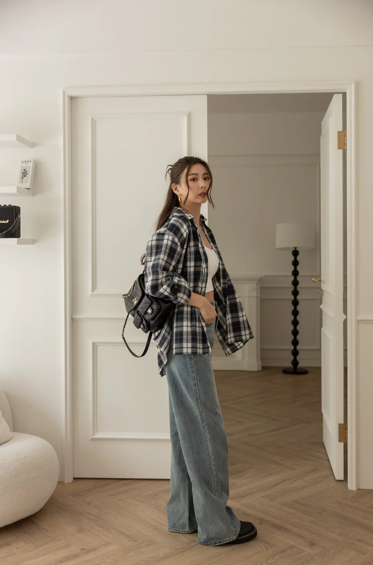 仿舊刷色修飾腿型高腰直筒牛仔褲