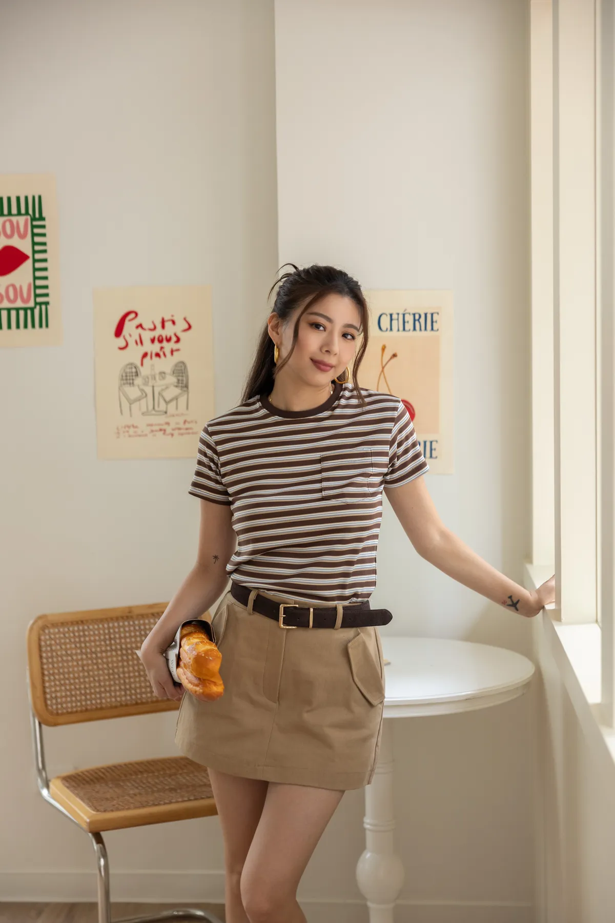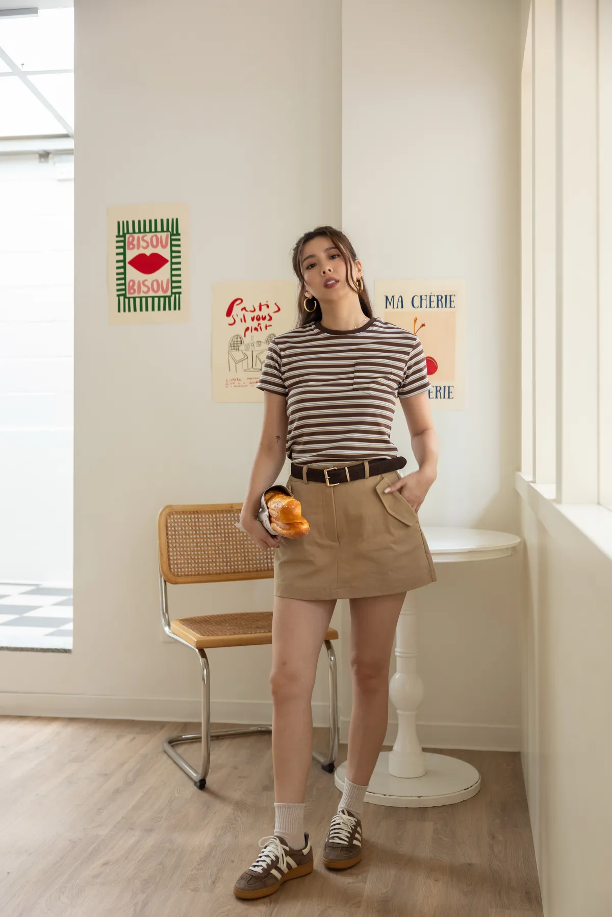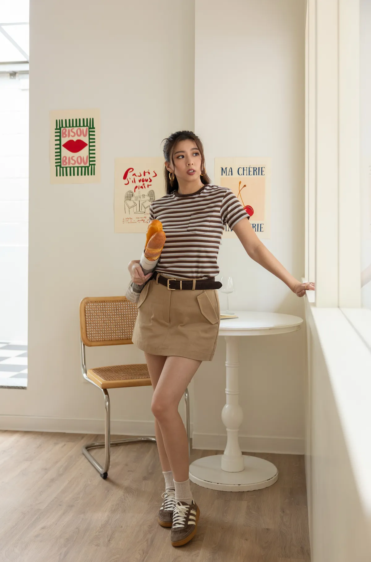 Miu風A字口袋工裝後鬆緊褲裙(卡其)