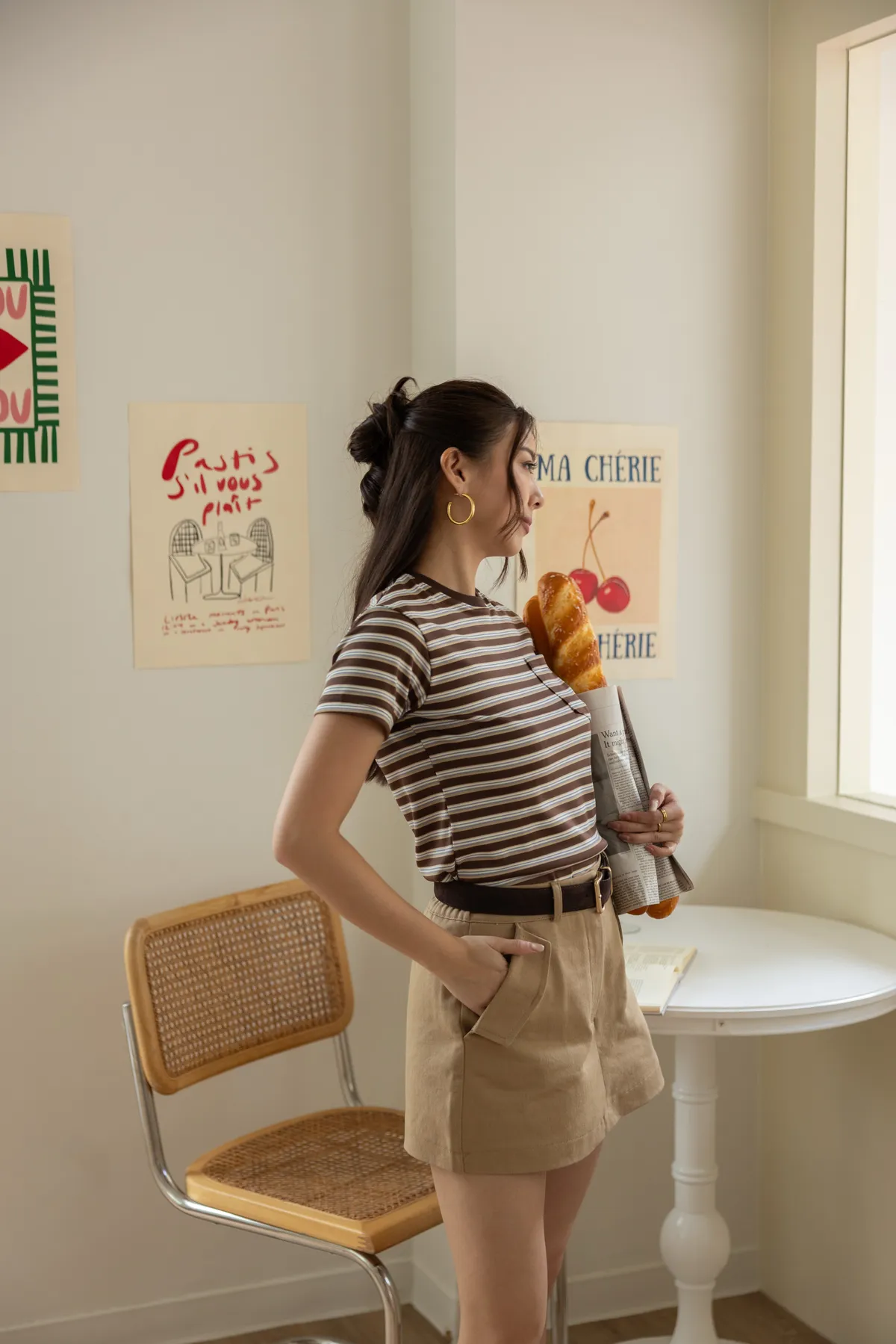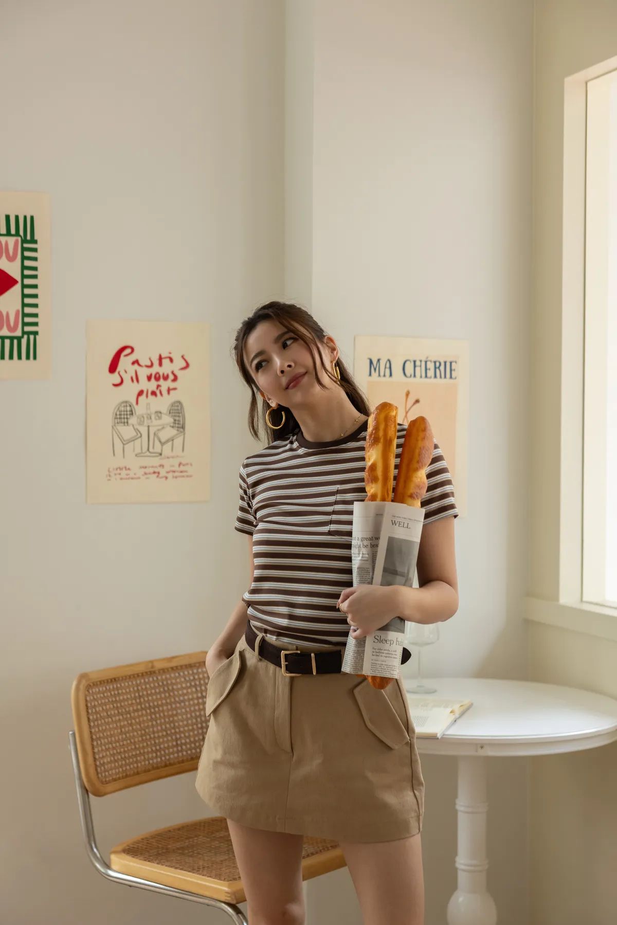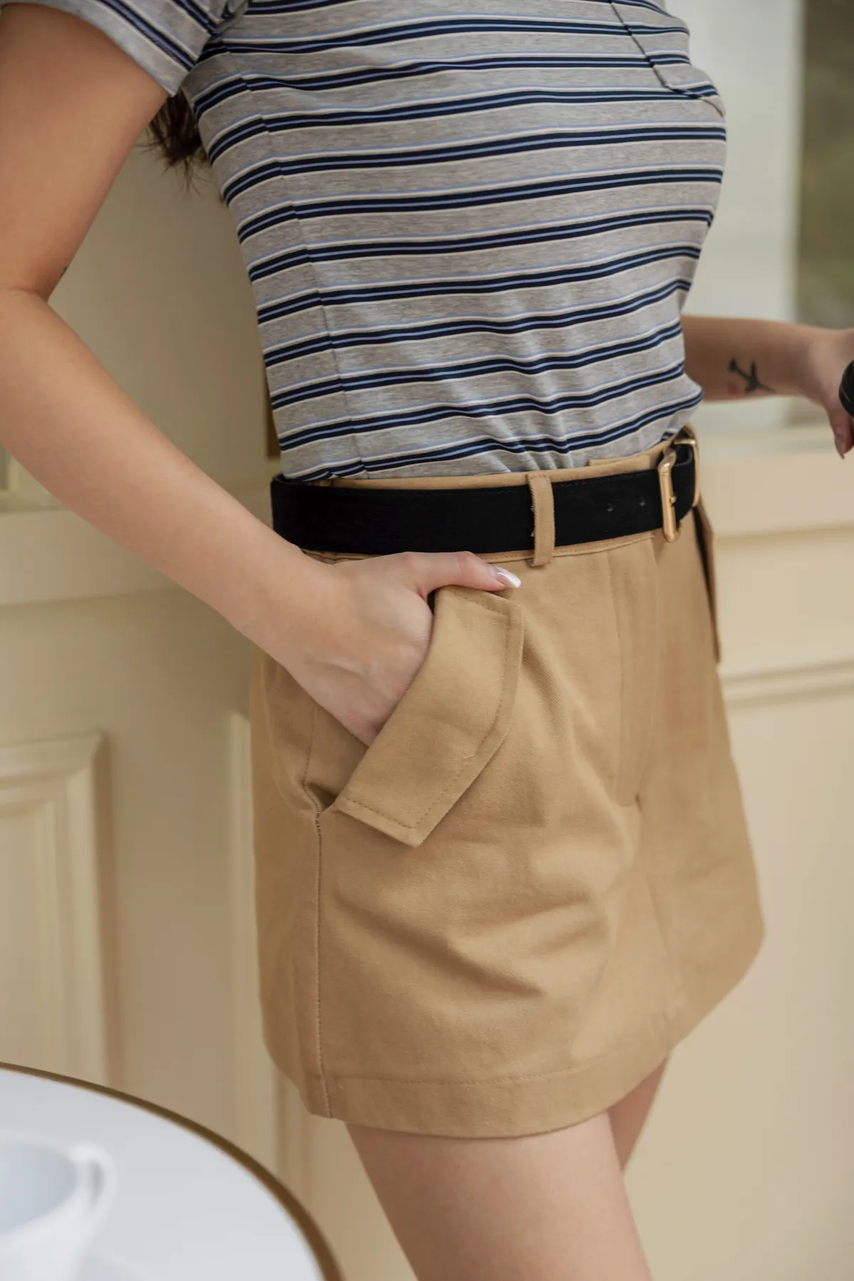 Miu風A字口袋工裝後鬆緊褲裙(卡其)